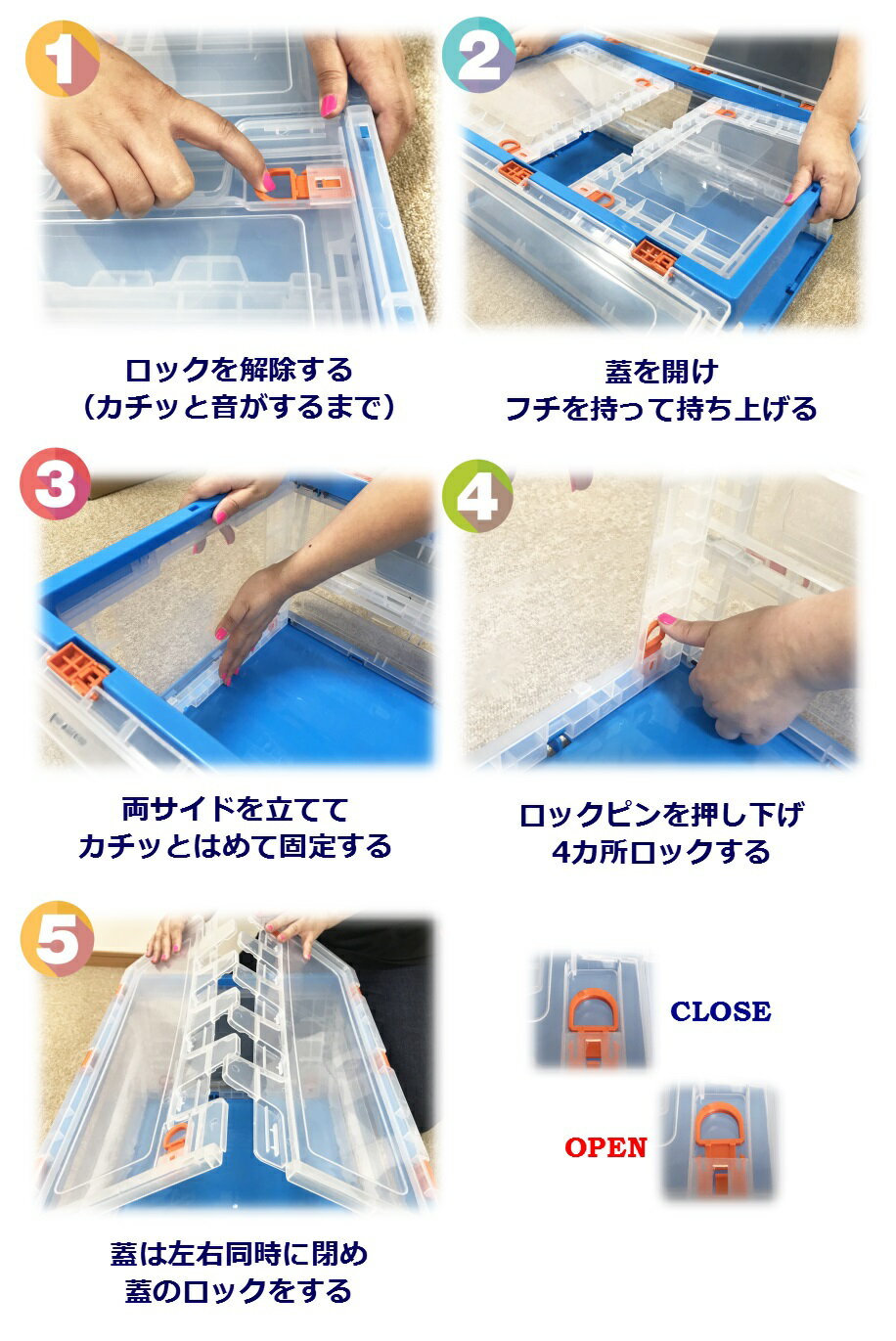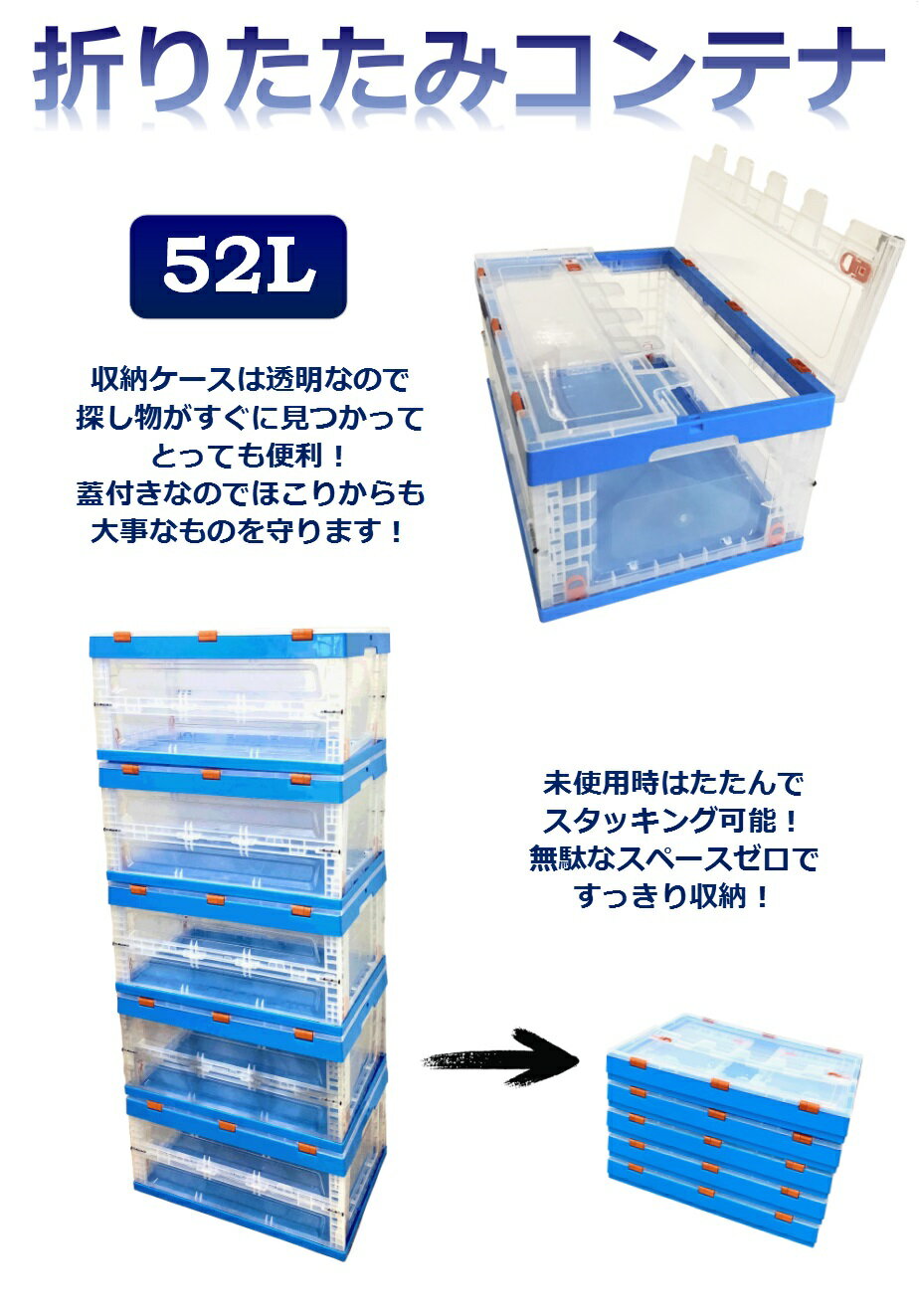 5個セット 折りたたみコンテナ TX6428 コンテナボックス コンテナ 折り畳み おりコン 収納ボックス プラスチック 収納ケース スタッキング 積み重ね 幅39×奥行59×高さ29cm 52L コンテナー オリコン クリアケース 蓋付