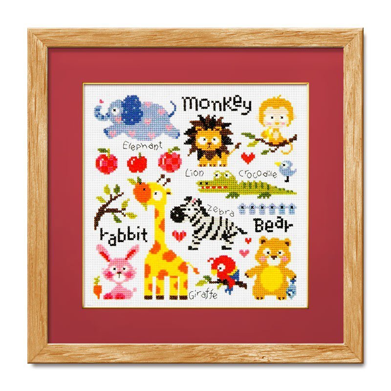 【まとめ買いクーポン配布中】 クロスステッチ キット 刺繍 キット 初心者 図案印刷 手芸 初心者 かわいい 図案 動物園 インテリア アニマル ゆるキャラ 簡単 刺繍 送料無料 指ぬき 糸通し付き 日本語説明書付き 子供屋 手芸キット 三四郎市場 送料無料