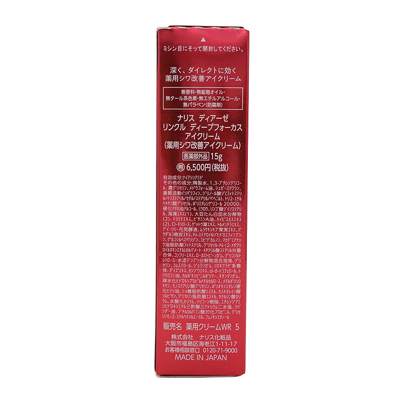 naris ナリス DEARSE ディアーゼ リンクル ディープフォーカス アイクリーム 医薬部外品 15g 無香料[ギフトラッピング対応]