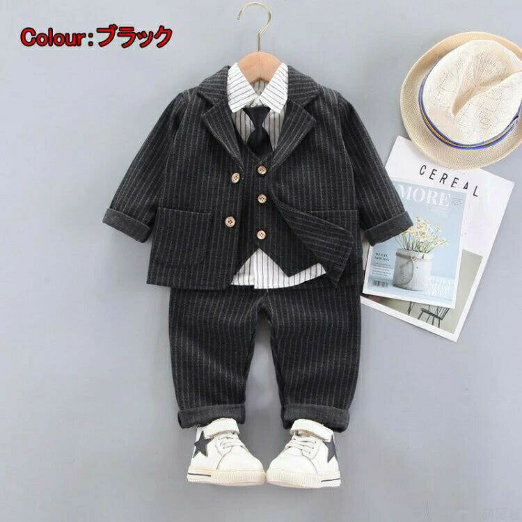商品情報注意事項:●サイズ詳細等の測り方はスタッフ間で統一、徹底はしておりますが、実寸は商品によって若干の誤差(1cm〜3cm )がある場合がございますので、予めご了承ください。●製造ロットにより、細部形状の違いや、同色でも色味に多少の誤差が生じます。▼商品の色は、撮影時の光や、お客様のモニターの色具合などにより、実際の商品と異なる場合がございます。あらかじめ、ご了承ください。▼生地の特性上、やや匂いが強く感じられるものもございます。数日のご使用や陰干しなどで気になる匂いはほとんど感じられなくなります。▼同じ商品でも生産時期により形やサイズ、カラーに多少の誤差が生じる場合もございます。▼他店舗でも在庫を共有して販売をしている為、受注後欠品となる場合もございます。予め、ご了承お願い申し上げます。▼出荷前に全て検品を行っておりますが、万が一商品に不具合があった場合は、お問い合わせフォームまたはメールよりご連絡頂けます様お願い申し上げます。速やかに対応致しますのでご安心ください。4点セット 子供スーツ 子供服 フォー キッズ ベビー マタニティ 続々入荷中 ブラック ネイビー グレー S/80(身長約75cm) M/90(身長約75~85cm) L/100(身長約85~95cm) XL/110(身長約95~105cm) 2XL/120(身長約105~115cm)