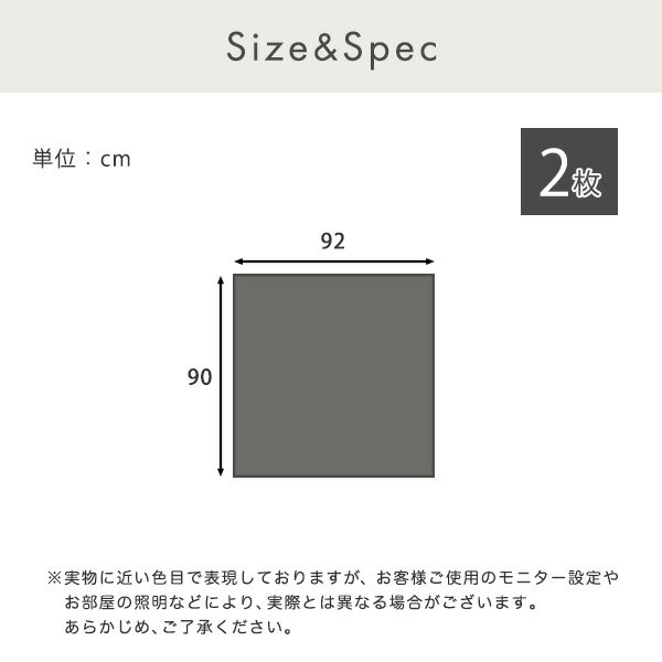 【素材】 塩化ビニル樹脂 保護フィルム ポリエステル 【商品サイズ】 92×90cm(2枚) 【商品重量】 240g×2 【梱包サイズ】 96.5×8.5×1cm(2本) 【梱包重量】 280g×2 【生産国】 日本 【カラー】 TU(通常販売分) 【その他】 完成品