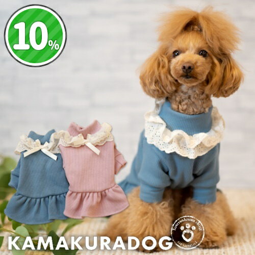【犬の服】レースリボンリブワンピース