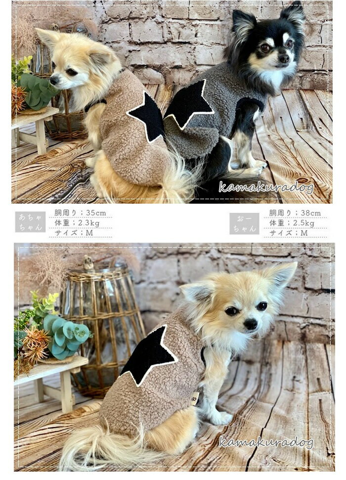 犬/犬服/犬の服/服/ドッグウェア/ドッグ/ウェア/dogwear/ペット/ペット服/ペット用服/ 小型犬/小型犬用品/子犬/犬用ウェア/かわいい服/人気/おしゃれ/チワワ/トイプードル/ トイプー/マルチーズ/ポメラニアン/ポメ/ヨークシャテリア/ヨーキー/マルチーズ/ミックス犬 ダックス/シーズー/春/夏/秋/冬/春夏/秋冬/トイプードル 服 冬/トイプードル 服/子犬/ チワワ 服/チワワ グッズ/パピヨン の 服/犬 服 シーズー/犬 服 かわいい/犬 服 おしゃれ/ トップス/犬 春服/犬 夏服/犬 秋服/犬 冬服/キルト/スナップ/ボタン/重ね着/バッジ/1.首・袖口のリブが伸縮性よく着せやすい 2.もこもこボア素材が秋冬うれしい 3.大きなスターがポイント★ *モデル犬が重ね着しているトップスはこちらからご利用ください。 首周り/胴周り 着丈 体重 S 18/32 21 約2kg M 22/38 26 約3.5kg L 27/44 31 約5.5kg XL 30/50 34 約8kg ※上記に記載しております表はお洋服の実寸です。(2〜3cmほどの誤差はございます。) 洋服のデザイン、また愛犬の個体差や毛量によって若干サイズが異なる場合がございますので、事前にワンちゃんのサイズを測った上でご検討下さい。 ※ご覧の環境によっては実物と色味が異なる場合がございます。あらかじめご了承くださいませ。