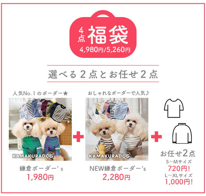 【12/1(月)限定!全品ポイント2倍!】【犬 服 秋冬 Tシャツ】全サイズ対象・選べる4点福袋 送料無料 鎌倉DOG トップス 人気 ( 犬の服 犬服 小型犬 シャツ トイプー ダックス チワワ ドッグウェア おしゃれ かわいい )