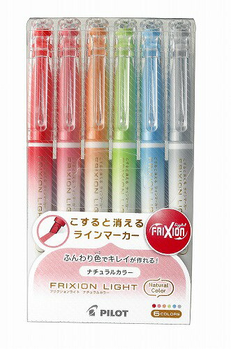 こすると消えるラインマーカー「フリクションライト ナチュラルカラー6色セット」[FRIXION light6色セット](ふんわり色ラインマーカー)淡い色蛍光ペン(SFL-60SL-6CN)