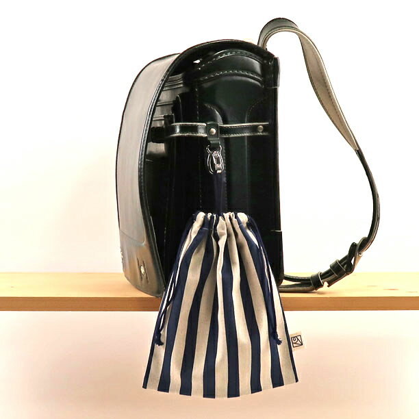 ループ付き巾着袋(給食袋)24cm×20cm(loop-LL)ナチュラルストライプ 2cm刻みでサイズが選べる! Made in Japan