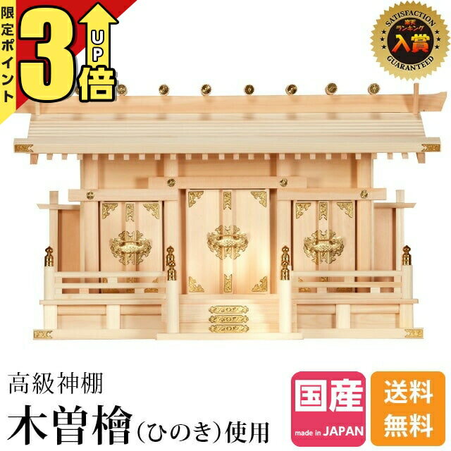 【P3倍★ブラックフライデー限定】神棚 【楽天1位】 日本製 三社神棚 国産 おしゃれ 棚板 セット お供え お札 シンプル ひのき 木曽ひのき 三社 桧 檜 通し片屋根三社 小 003