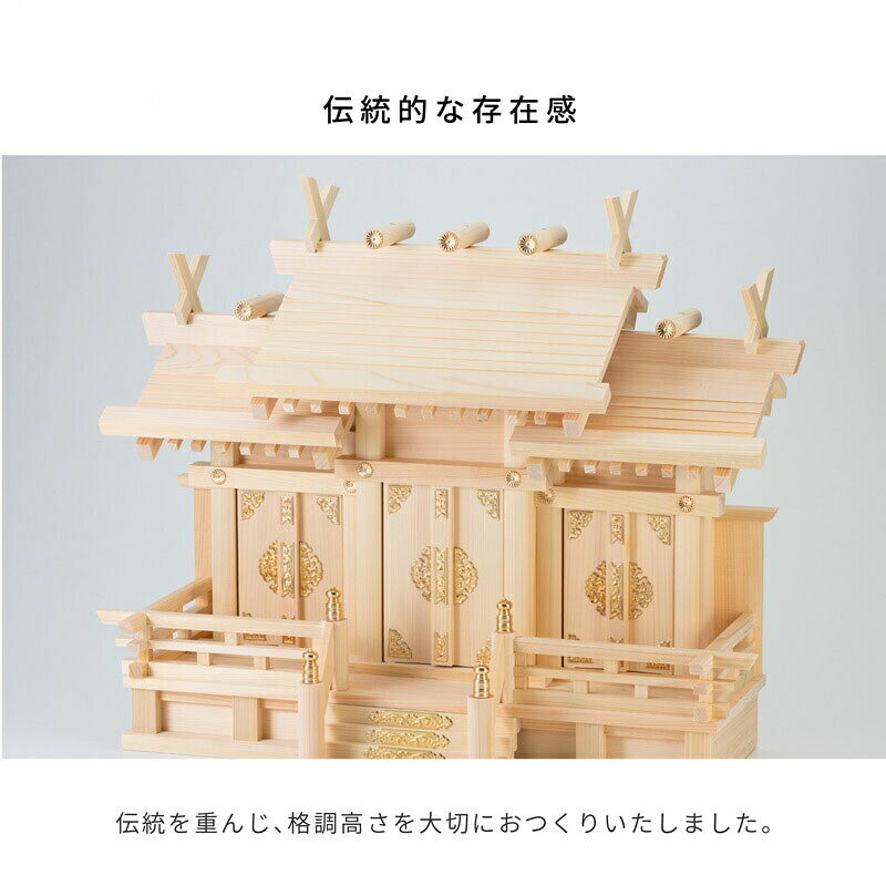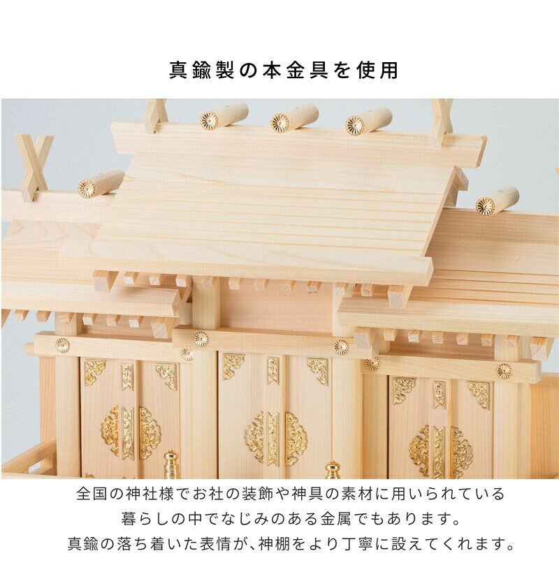 【ブラックフライデー限定ポイント5倍】 神棚屋根違い三社 小 本金具 東濃桧 東濃ひのき 送料無料 真鍮 kamidana