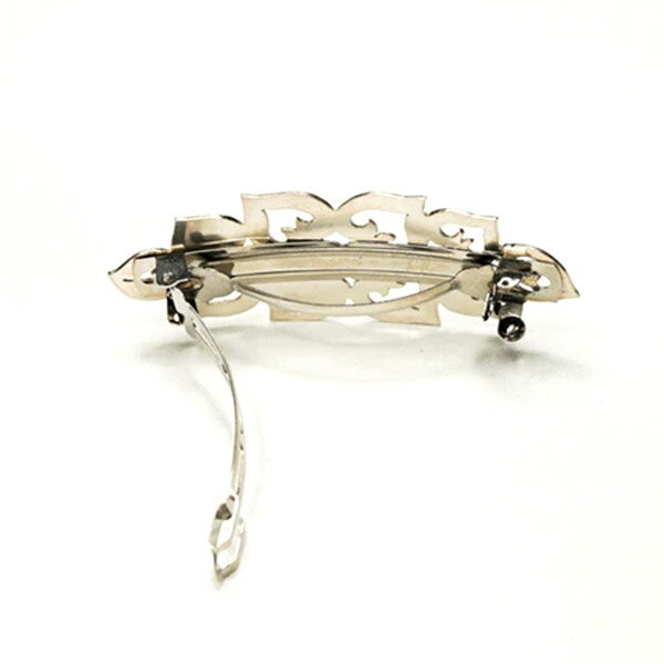▲「かざりや鐐」の商品一覧はこちら 双葉葵を並べて透かし彫りをして作ったバレッタ。 ●金属を使用しておりますので、色の変化があります(酸化する) 銀系は黄色から茶色、黒く 真鍮はアンティークな黄土色っぽくなっていきます。 使い方によって変化の具合が違うので、使っていただくたびに味わい深くなっていきます。 ※黒ずみが気になる場合は、綿や柔らかい布を湿らせ重曹を付けてこすり、しっかり洗い流し、すぐ水分を拭き取ってください。光沢を出したい場合は金属磨き等で磨いてください。 ●水気(湿気)に弱いので、特に楊枝など、使用後は洗って、すぐ拭いてなるべく空気に触れないよう保管してください。 <鐐> は良質な銀を表す 南鐐 から頂き、銀を中心にしたものづくりをしています。 銀は、日本人のわびさびの心に通じる、金よりも落ち着いた控えめな美しさを持ち、愛でる時間と共に馴染んで行き、味わいのある「いぶし色」に変わって行く楽しみがあります。 そんな銀の魅力に取り付かれた従業員がお客さんに喜んで頂けるよりよい品を、と日々頭を悩ませながら、鐐を育てて行っています。 サイズ 約8×3.1cm 素材 銀 用途 バレッタ 髪留め 髪飾り ヘアアクセ ヘアアクセサリー ジュエリー パーティー 結婚式 二次会 同窓会 誕生日 記念日 成人 就職 入学 お祝い 贈り物 プレゼント ギフト 海外へのお土産 など 入り数 1個 生産 日本製 ご注文後のキャンセル・交換・数量変更などはご対応出来かねます。ご注文前に、今一度ご注文内容・納期・ご住所などをご確認ください。 こちらは、取り寄せ商品になります。ご注文のタイミングによっては欠品の場合がございます。 あらかじめご了承くださいますようお願い申し上げます。▼ラッピング希望の方はこちら 関連商品 靴べら 蚊取り猫 ネックレス 栞「猫物語」 ピンバッジ しおり 菓子切り 菓子切り用小物 ペーパーナイフ ピアス イヤリング ブローチ メガネホルダー