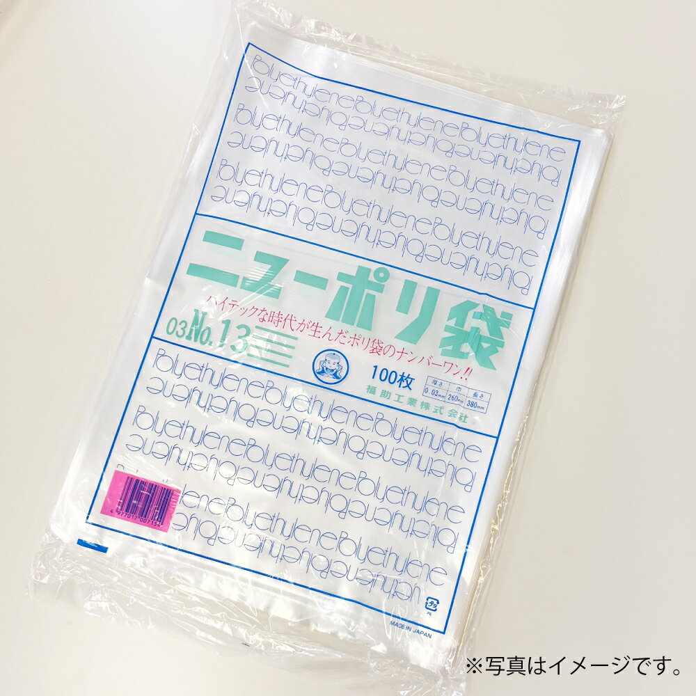 日本製 ポリ袋 ニューポリ 03 No.13 1,000枚 30ミクロン 26cm×38cm 30ミクロン 13号 ビニール袋 食品衛生法規格基準適合品 LDPE 国産 食品 工業系 保存 平袋 業務用 プロ 福助工業