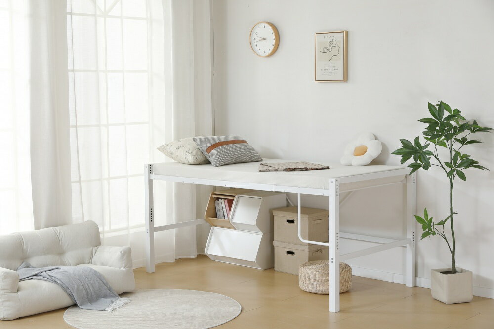 商品情報商品詳細カラー:ブラック/ホワイト素材:スチールサイズ:本体サイズ/195*100*90.5cm(20.5Kg)梱包サイズ/98*39.5*15.5cm(22.5Kg)完成品/組立品:組立品おすすめポイント【おしゃれで省スペース 】限られた空間を素敵に演出できる「ちょうどいいベッド」が登場!寝る面のサイズはベッド本体のサイズで、1センチも無駄にならないです。【寝台面の高さは三段調整可能】お部屋の高さとお好みに合わせて、窮屈さを感じられない高さに設置しましょう【90.5cm高さのロータイプ 】ちょうどいい高さで天井からの圧迫感がなく、毎日の昇り降りや、布団の上げ下ろしを楽にすることができます。【安心の耐荷重200kg】最大200kgまでの重量が耐えるので、子供はもちろん大人でも安心してご使用いただけます。※床板の上に直接乗ったり、薄手のマットレスや布団で使用すると、床板が破損する恐れがあります。※厚さ10cmの硬めマットレスをおすすめします。【縦のスペースを活用して部屋の狭さをカバーしましょう】ベッド下をクローゼットにしたり収納スペースをつくろう【耐震性に優れているフレーム 】頑丈な構造により、しっかりとしたサポートを提供し、揺れを最小限に抑えます。【転落防止のサイドフレーム】安全性を追求し、落下を防ぐ高いサイドフレームを備え、寝相の悪い方も安心です。※サイドフレームは取り外し可能です。【限られたスペースを有効活用】間取りや気分に合わせていろいろな使い方ができます。クローゼット・収納スペースに、スタンディングワークの作業台としても、別売りのマットを下に置けば二段ベッドに、子ども部屋に。【左右組み換え可能】ステップは左右どちらにも取り付け、理想のレイアウトを実現できます。【新作】ロフトベッド パイプベッド シングル ベッド ロータイプ 省スペース 収納 北欧風 大人 一人暮らし 子供部屋 スチール 耐震 ベッド 高さ調整可能 サイドフレーム ちょうどいいベッド !長さ195 幅100 高さ90.5cm 寝台面の高さは三段調整可能 安心の耐荷重200kg 耐震性に優れているフレーム 5