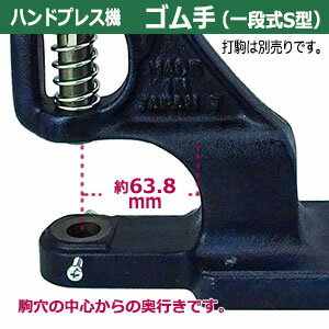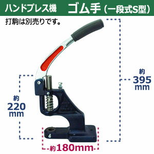 品 名:ハンドプレス機【ゴム手】 サイズ:奥行180mm幅90mm高さ220mm 材 質:本体:鋳鉄 持ち手部分:ゴム 詳 細:1台 付属品:レバー1本 六角ボルト1 六角ボルトナット1 ご注意ください:打駒は別売りです。 また、工具類は、消耗品のため開封・未開封に関わらず返品交換いたしかねますので、ご確認の上、ご購入ください。 *この商品は、宅配便でお届けします。 手塗り塗装のため、刷毛ムラがあります。ご了承ください。 ●ハンドプレス機は下記です。 ・ハンドプレス機 ●ハンドプレス機打駒は下記です。 ・各種打駒 ●プロ用手打ち工具は下記です。 ・プロ用手打ち工具 ●ハトメの大きさは下記です。 ・かけるのハトメはコチラ ・ハトメはコチラ ・両面ハトメはコチラ ・アイレットはコチラ ■クラフト金具卸のハンドプレス機 ハンドプレス機は、ハトメやカシメ、ホックの取り付けが簡単にできる小型プレス機です。「ハンドプレス機打駒」(別売り)を取り替えるだけで色々な金具の取り付けができます。ハンドプレス機は、手打ち工具より静かに作業でき、比較的簡単で確実に金具を取付することができます。また、金具全体に力がかかるので、失敗が少なく綺麗にハトメなどの金具を取り付けられますので、力のない方や初心者の方にオススメです。 クラフト金具卸では、用途に合わせコンパクトタイプでお手頃価格のハンドプレス機(ゴム手)、取り付け対象が大きいものに対応した懐の深いタイプM型、筒ものにも取り付け可能な台座の浮いた二段式タイプのSM型の3タイプご用意しております。機種が大きくなると、掛ける負荷も大きくなります。 アイレット30以降の大きい番手のハトメを留める場合には、ハンドプレス機M型以上(M型・SM型)の大きい機種をオススメいたします。コンパクトタイプのハンドプレス機(ゴム手)は、大きいアイレットなどを取り付けるには、パワー不足です。 ●ハンドプレス機打駒の取り付け方 ・レバーと連動した芯棒の下に「上駒」をとりつけ、下の台座部分の穴に「下駒」を取付けます。 ●ハンドプレス機を使った金具の取り付け方 1.ハトメ抜き・穴あけポンチと呼ばれる工具でハトメの足を通す穴(ほぼ内径と同寸法の穴)をあける。 2.専用の駒をセットしたハンドプレスを用意します。 3.ハンドプレス機台座にセットした下駒の上にハトメの足を 上にして載せます。 4.ハトメ足の上に穴を開けた布などを置きます。 5.ハトメ足の上の布などを挟む形でハトメ座を載せます。 6.ハンドプレス機のレバーを引き下ろします。