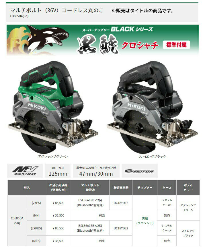 HiKOKI マルチボルト(36V)コードレス丸のこ C3605DA(SK)(NN) アグレッシブグリーン 本体のみ 36V対応 ハイコーキ 日立