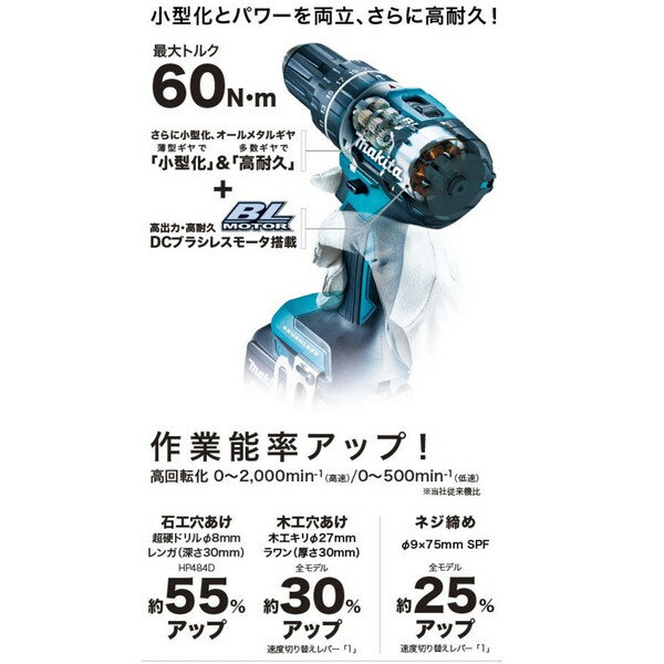 電池・充電器はその他機種のセット商品をバラシた商品です。 説明書・外箱・ケースは付属しません。 マキタ makita 充電式震動ドライバドリル DF484D 青 バッテリBL1830B(1個)+充電器DC18WC付 当店オリジナルセット品 ※ケースは付属しません。 ■コンパクト&スピーディ 高剛性アルミボディを採用した、ミドルクラス登場。 ■小型化とパワーを両立、さらに高耐久! ■作業能率アップ! 高回転化 0〜2,000min-1(高速)/0〜500min-1(低速) ■さらに明るく照らす!LEDライト〈2灯式〉 回転前点灯&残照機能付 ■より細かな調整が可能!21段クラッチ+直結 リングを回した際のクリック感が増し、優れた操作性を実現。 ■防じん・防滴「アプト」 過酷な現場環境に耐え抜く。 ■その他特徴 ・握りやすいソフトグリップ ・ワンスリープチャック 88381837842 88381837835 88381464017 88381597593 0088381837835 0088381464017 0088381597593電池・充電器はその他機種のセット商品をバラシた商品です。 説明書・外箱・ケースは付属しません。 マキタ makita 充電式震動ドライバドリル DF484D ※販売はタイトルの商品です。