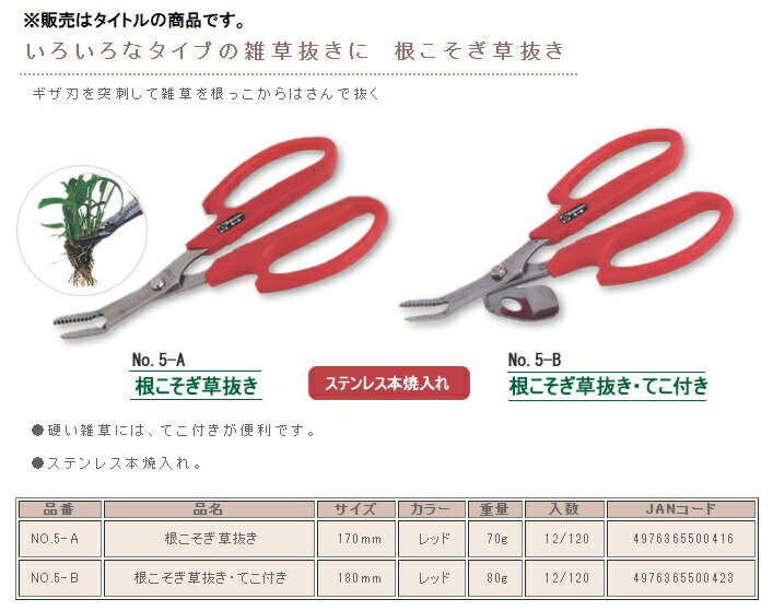 サボテン No.5-B 根こそぎ草抜き・てこ付き 全長180mm ステンレス本焼入れ 500423 小型便 在庫