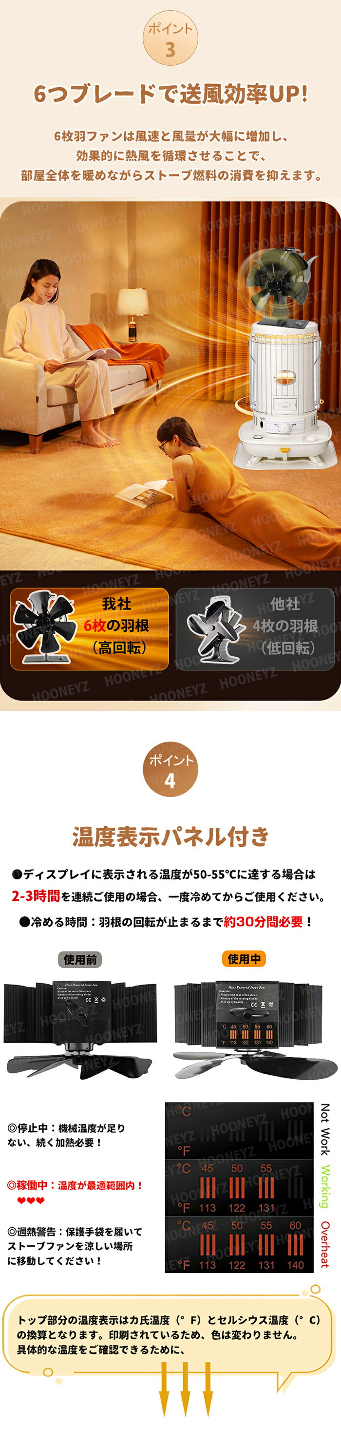 【第1位★温度計付き】即納 ストーブファン 火力ファン エコファン ゼーベック 火力熱炉ファン 6枚羽根 6つブレード 省エネ 薪ストーブファン 石油ファンヒーター 暖炉ファン 空気循環 電源不要 寒さ対策 キャンプ エコストーブファン