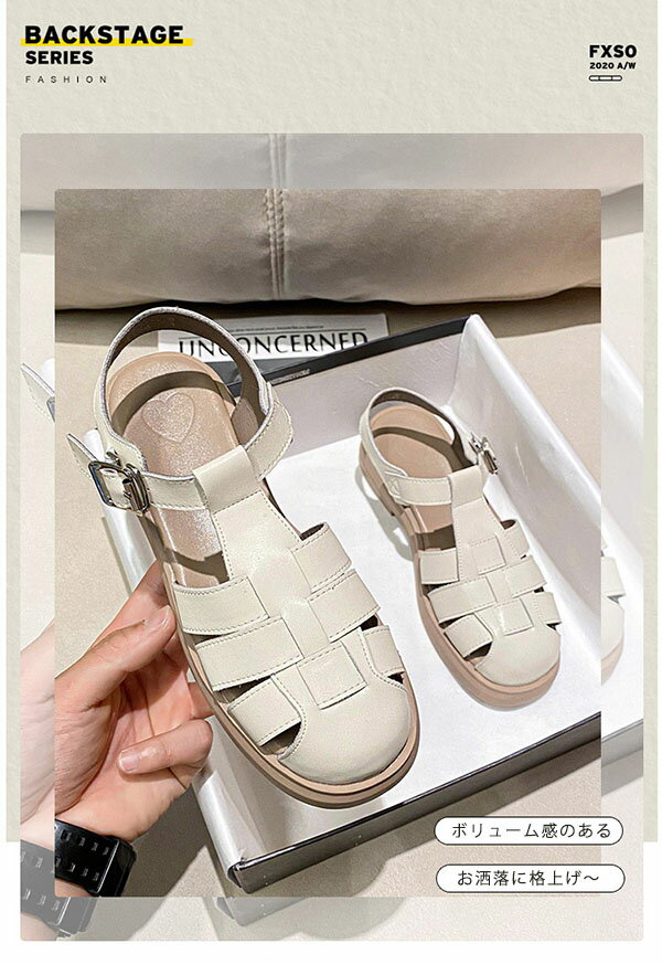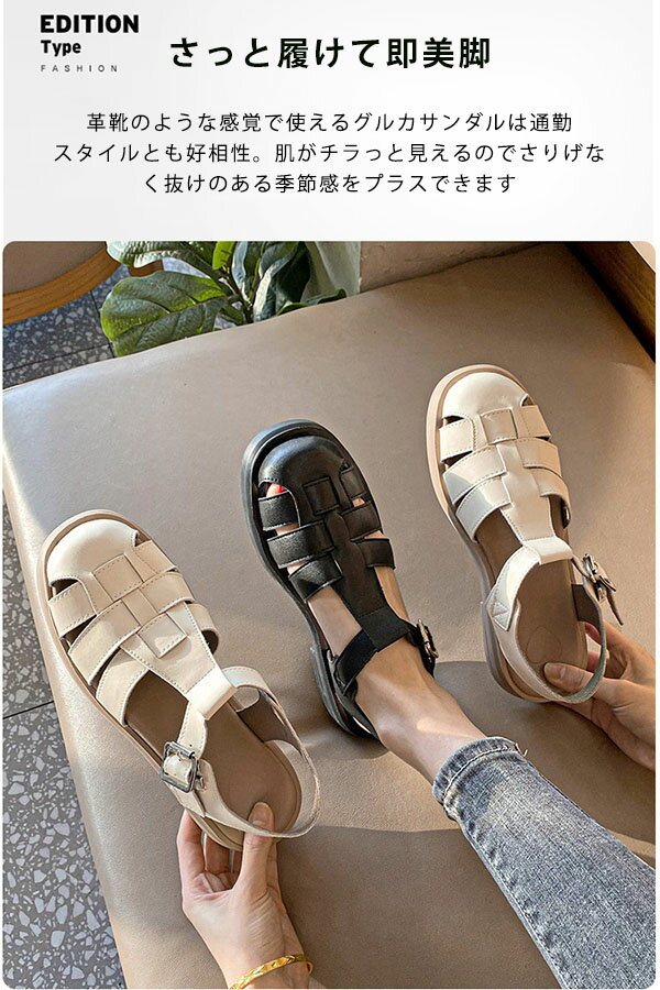 グルカサンダル レディース 厚底 疲れない PUサンダル 厚底スポーツサンダル 3.5cmヒール フラット つま先あり 透かし編み 歩きやすい ストラップ スポサン ぺたんこ ペタンコ ローヒール 黒 ベージュ 美脚 通勤 通学 旅行 レジャー 海