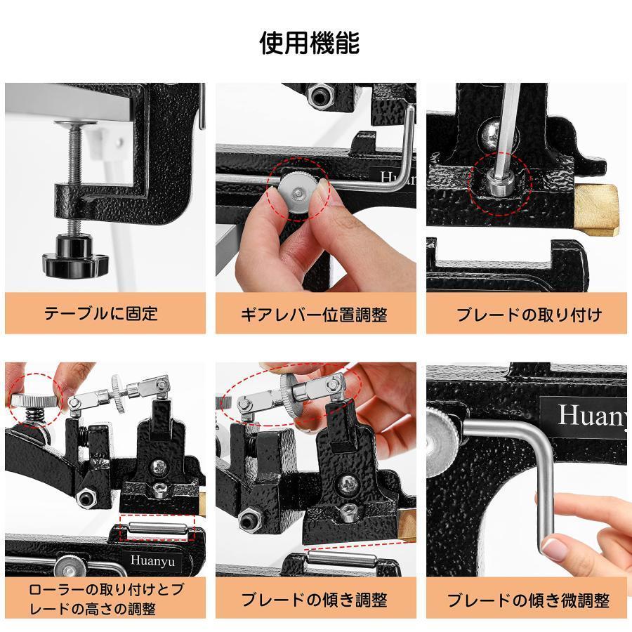 ◆斜め/曲げ角度/全体/限定幅研削できます。あらゆる革加工に満足いただけます。◆鞣し、カウレザー、ホースレザー、ピッグスキンなどほぼすべての革適用です。◆剥離の幅が調整できます。◆4mm、8mm、12mm、27mmのローラーx1付属。剥離幅に合わせてローラーを選択してください。◆組み立てる必要がなく、机に固定していつでも使用できます。