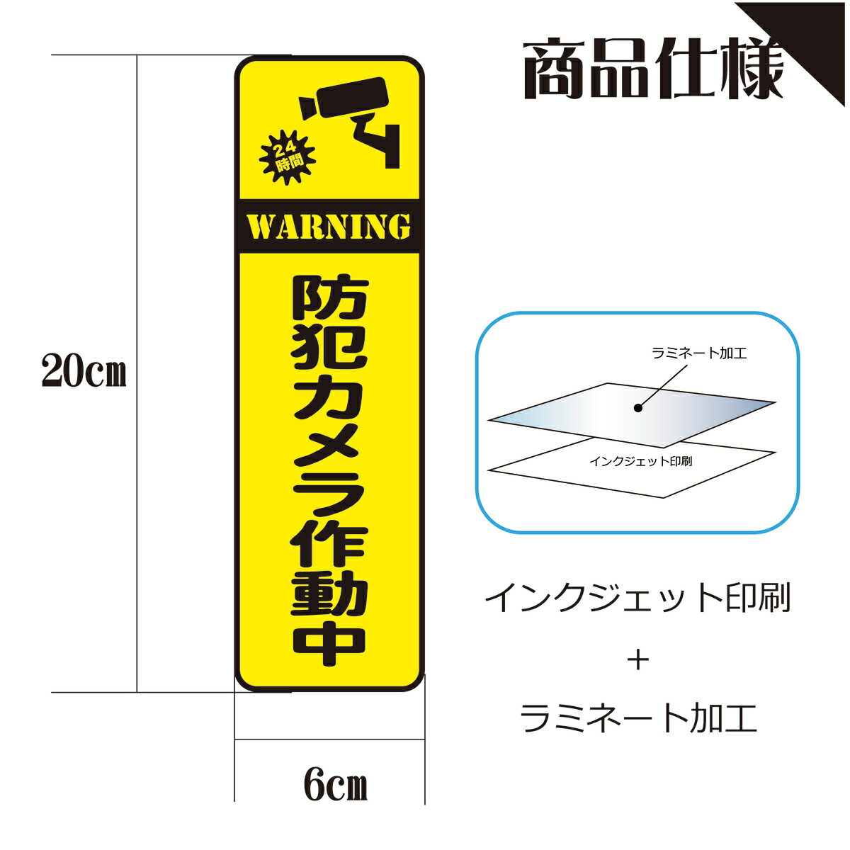 商品情報サイズ横6cm × 縦20cm材質ポリ塩化ビニルインクジェット印刷表面 ラミネート加工(艶なし)商品説明モニターや照明によって実際の色合いとは異なる場合があります。ステッカー インクジェット シール 耐水 ラミネート 屋外 屋内 防犯カメラ作動中 監視カメラ 防犯 警告 選べる4カラー セキュリティー マーク 録画中 サイン Sサイズ 防犯対策に 10