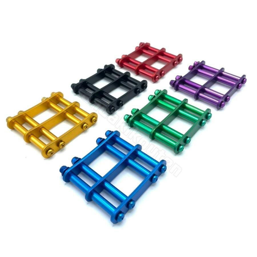アルミロングチェーン金具一式 (アルミアルマイト加工) (セット内容) アルミロングプレートx3 アルミパイプx8 アルミナットx4 アルミビスx4 カラーバリエーション ALU-L-R (レッド) ALU-L-V(バイオレット) ALU-L-BL (ブルー) ALU-L-G (グリーン) ALU-L-GO (ゴールド) ALU-L-B (ブラック) 計6色