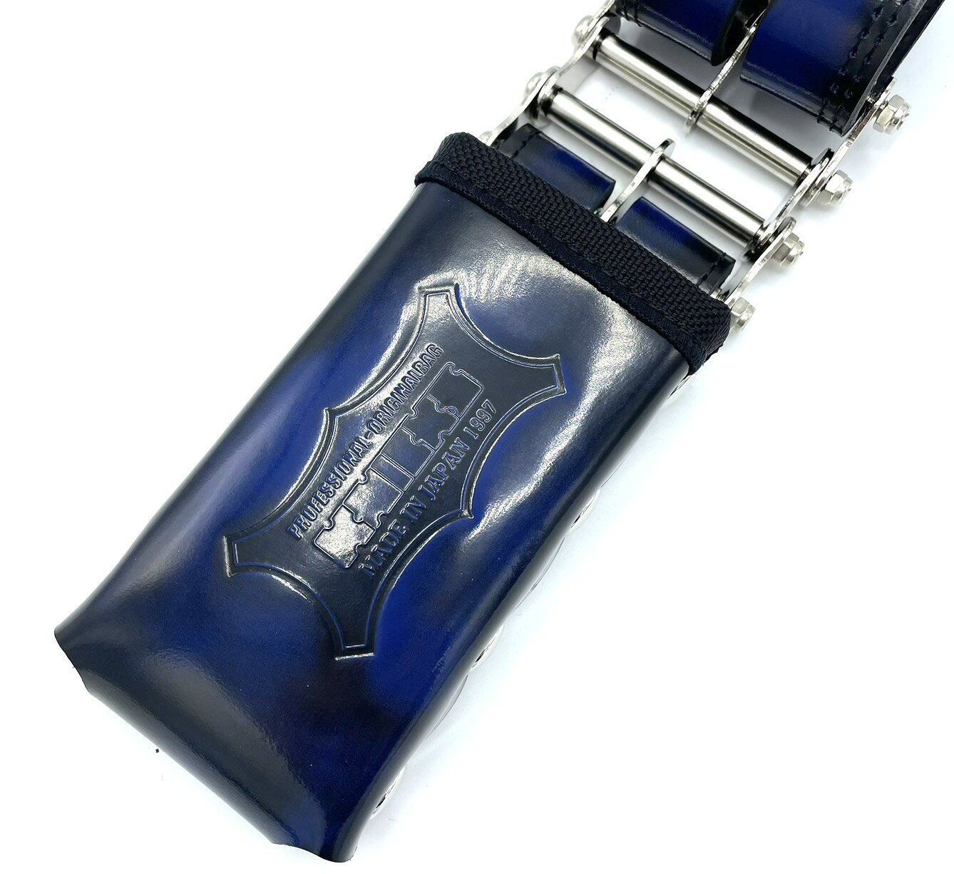 KNICKS ニックス ADV-100LDX3-BL 公認カスタム 【ブルー】 (縁バリ巻き) アドバンスガラス革3連結チェーンタイプ鳶レベルホルダー 腰袋 腰道具 工具差し チェーン式 金具