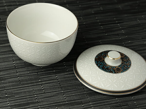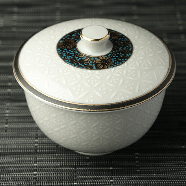 九谷焼 白七宝蓋付碗(フタ付煎茶) 蓋付き煎茶/汲出し/フタ付き湯呑/法事/お坊さん/ふた付き煎茶