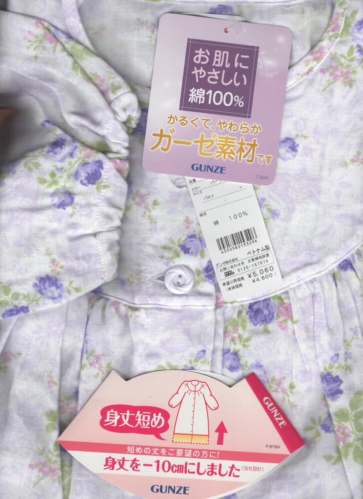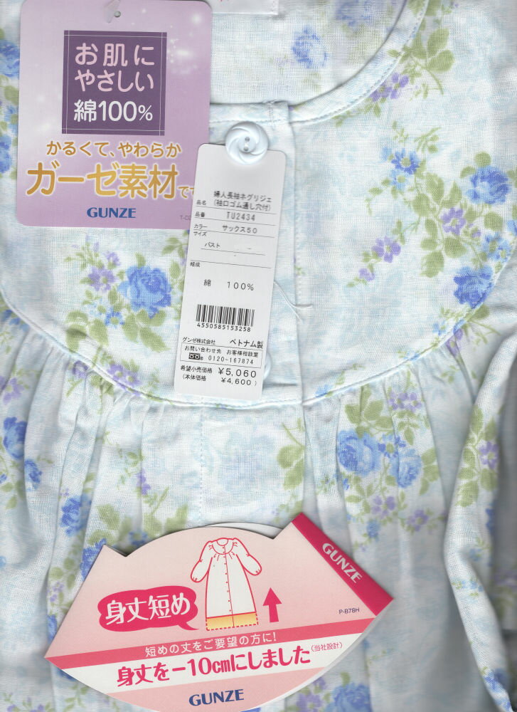 【楽天市場】グンゼ 婦人長袖全開ガーゼ織 ネグリジェ 身丈を10cm短くしました。TU2434