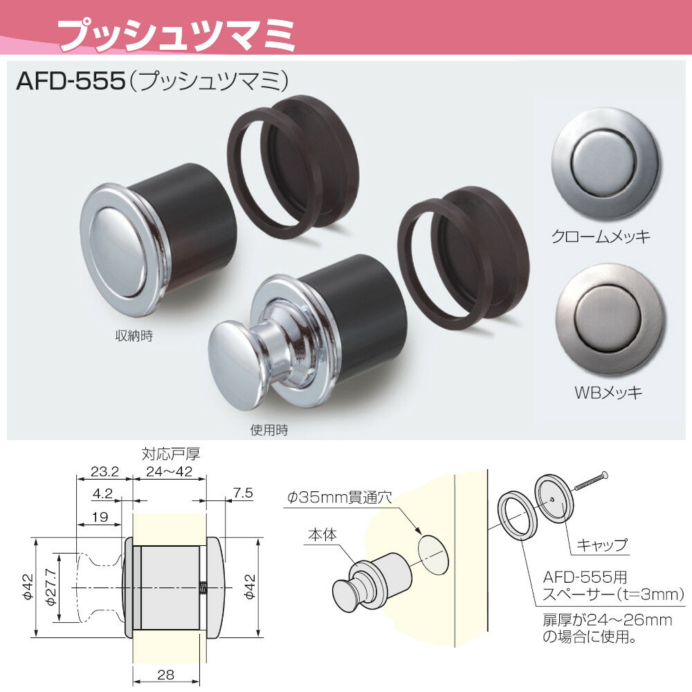 プッシュツマミ アトムリビンテック ATOM 080414 AFD-555(プッシュツマミ) クロームメッキ 【返品不可】