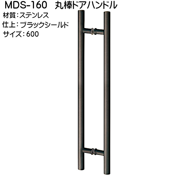 丸棒ドアハンドル 丸喜金属 MDS-160 ステンレス ブラックシールド サイズ:600mm