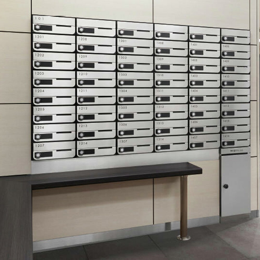 ポストW280×H120前入前出/屋内タイプ ナスタ KS-MB6002PY 扉開き方向:横 戸数2・3 錠前タイプ5種 ステンレスヘアーライン