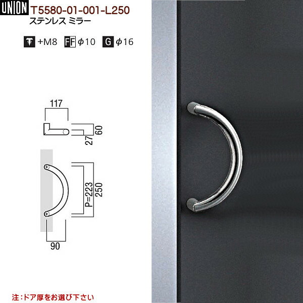 ドアハンドル 【ユニオン】 T5580-01 (L250(P223)×W117×D60mm) 両面用 【画像は一例につき、ご購入は商品詳細をご参考下さい】
