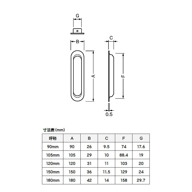 ベスト 内丸引手 No.345 ステンレス鋼 SUS304 ヘアライン/クリヤ塗装・ゴールド・アンバー サイズ(呼称)=90・105・120・150・180mm