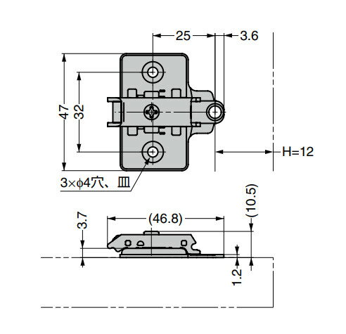 品番:360-P4W-32T 材料:鋼 仕上:ニッケルめっき 質量g:25 仕様 ●上下調整機構付(±2.5 mm) ●厚み:0 mm(標準厚) ●H寸法はインセット仕様時、扉厚+17 mmとなります。 ●GH-360FP使用時では、扉厚+19 mmとなります。 別売品 ●丸皿タッピンねじ3.5×15 オプション品 ●マウンティングプレート 取付治具 360-JIG
