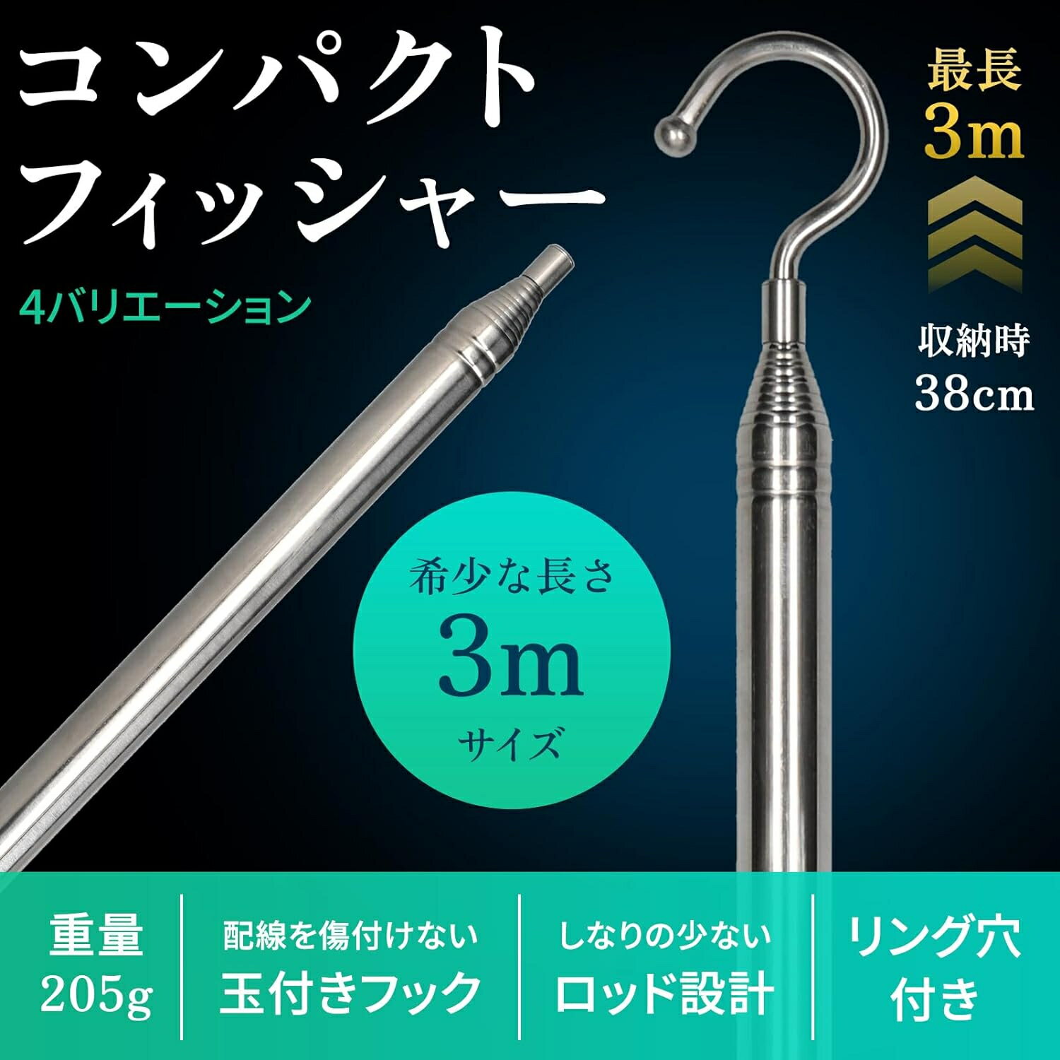 CotanCraft(カネシア工業)コンパクトフィッシャー3000 電工 電気工事 配線 電線 ケーブル フィッシャー キャッチャー フック 工具 ケーブルキャッチャー 引っ掛け棒 伸縮棒 伸縮フック ロープキャッチャー ピックアップツール マグネット棒 マグネットツール 耐久性 磁石