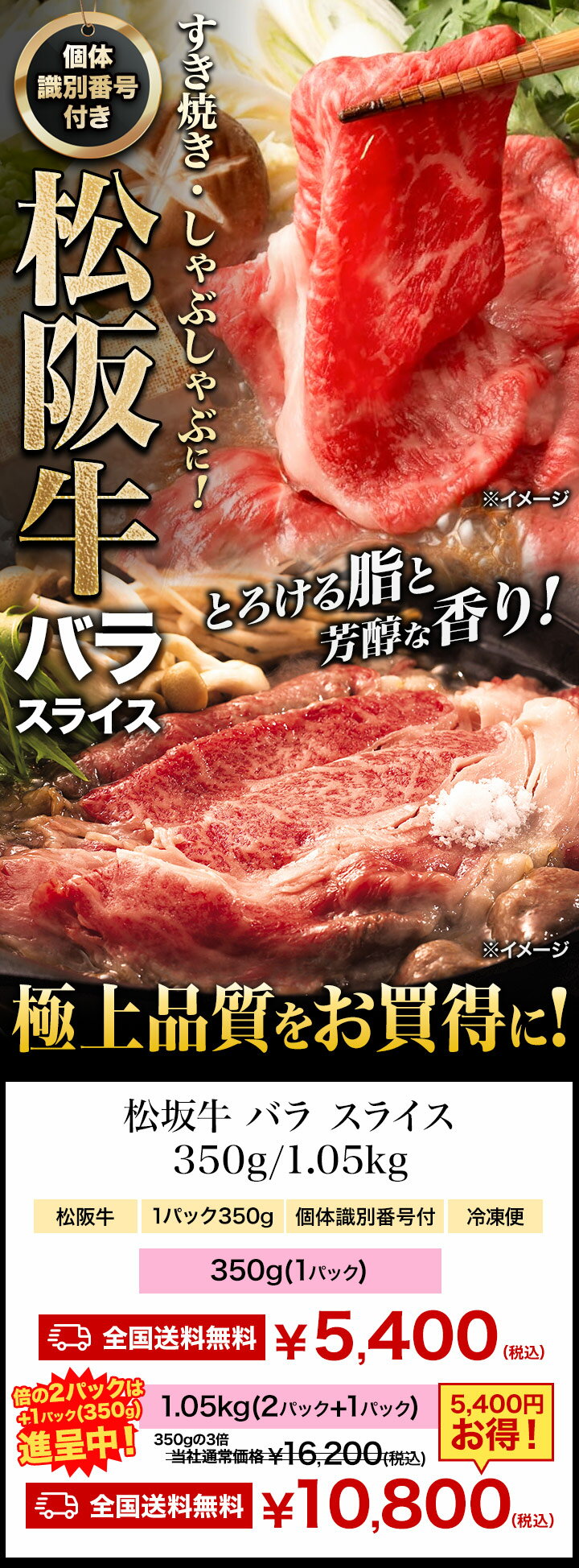名称 松阪牛バラスライス セット内容 【71909】350g(1パック) 【71910】1.05kg(350g×3パック) 厚み:約1.5mmスライス 部位:バラ 長さ:約20~30cm(パック詰めの際や輸送の際ちぎれる可能性あり) 原材料 松阪牛ばら肉 原産地 三重県 賞味期限 約2ヶ月(冷凍) ※ご家庭用の冷凍庫の場合、ドアの開閉が多く品質劣化する場合がありますので、なるべく早めにお召し上がりください。 保存方法 要冷凍(-18℃以下) 注意事項 ・解凍後、十分加熱してお召し上がりください。 ・食品につき、配送上の破損以外の返品はご容赦ください。 ・のし紙、または包装紙のサービスは行っておりません。 【こんなシーン、こんな方に】 年末年始 BBQ お祝い お年賀 お取り寄せ お取り寄せグルメ グルメ 誕生日 ギフト プレゼント 母の日 父の日 敬老の日 こどもの日 記念日 結婚記念日 還暦 還暦祝い 米寿 白寿 古希 喜寿 金婚式 銀婚式 七五三 入学 卒業 入学祝い 卒業祝い バレンタイン バレンタインデー ホワイトデー 成人式 成人 クリスマス クリスマスパーティー パーティー パーティ ホームパーティー お返し お礼 ご挨拶 手土産 土産 お土産 女性 男性 祖父母 祖母 祖父 お父さん お母さん 飲み会 家飲み 食べ放題 メガ盛り 大盛り 盛り合わせ バーベキュー グランピング キャンプ 海鮮焼き 海鮮BBQ 浜焼き 焼肉 鉄板焼き 惣菜 出来合い 帰省 お盆 夏休み 正月 お正月 お歳暮 お中元 肴 つまみ 酒のつまみ お酒のお供 ごはんのお供 おつまみ 宴会 【その他】 肉 お肉 ビーフ 牛肉 牛 ステーキ ビフテキ ビフカツ 焼肉 焼肉セット 和牛 黒毛和牛 国産牛 切り落とし しゃぶしゃぶ すき焼き スライス 牛しゃぶ 豚しゃぶ 冷しゃぶ サラダ カルビ ハラミ ホルモン ミスジ ヒレ フィレ ヒレステーキ シャトーブリアン 塩タン 牛タン タレ漬け 調理済み 焼くだけ 豚 豚肉 ポーク トンテキ トンカツ 豚の生姜焼き 生姜焼き 鶏肉 鶏 チキン 鳥肉 鳥 サラダチキン 親子丼 ハンバーグ ハンバーガー ホットドッグ ウィンナー ソーセージ フランクフルト 伊藤ハム 冷凍 冷蔵 解凍 パック 箱 ボックス セット 詰め合わせ 福袋 国産 日本産 鹿児島 宮崎 オーストラリア オージービーフ 近江牛 神戸牛 宮崎牛 松阪牛 松坂牛 米沢牛 N-B TO-W TS-N N-ST