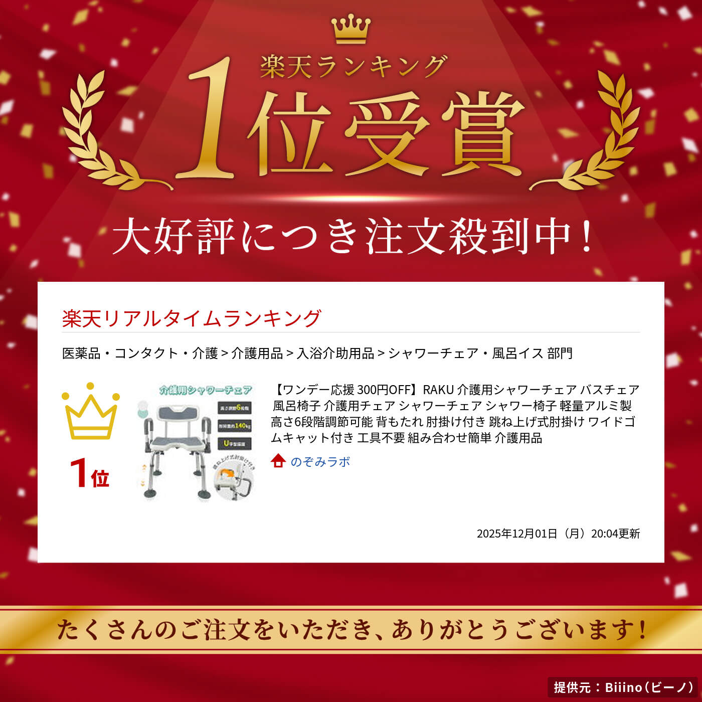 【ワンデー応援 300円OFF】RAKU 介護用シャワーチェア バスチェア 風呂椅子 介護用チェア シャワーチェア シャワー椅子 軽量アルミ製 高さ6段階調節可能 背もたれ 肘掛け付き 跳ね上げ式肘掛け ワイドゴムキャット付き 工具不要 組み合わせ簡単 介護用品