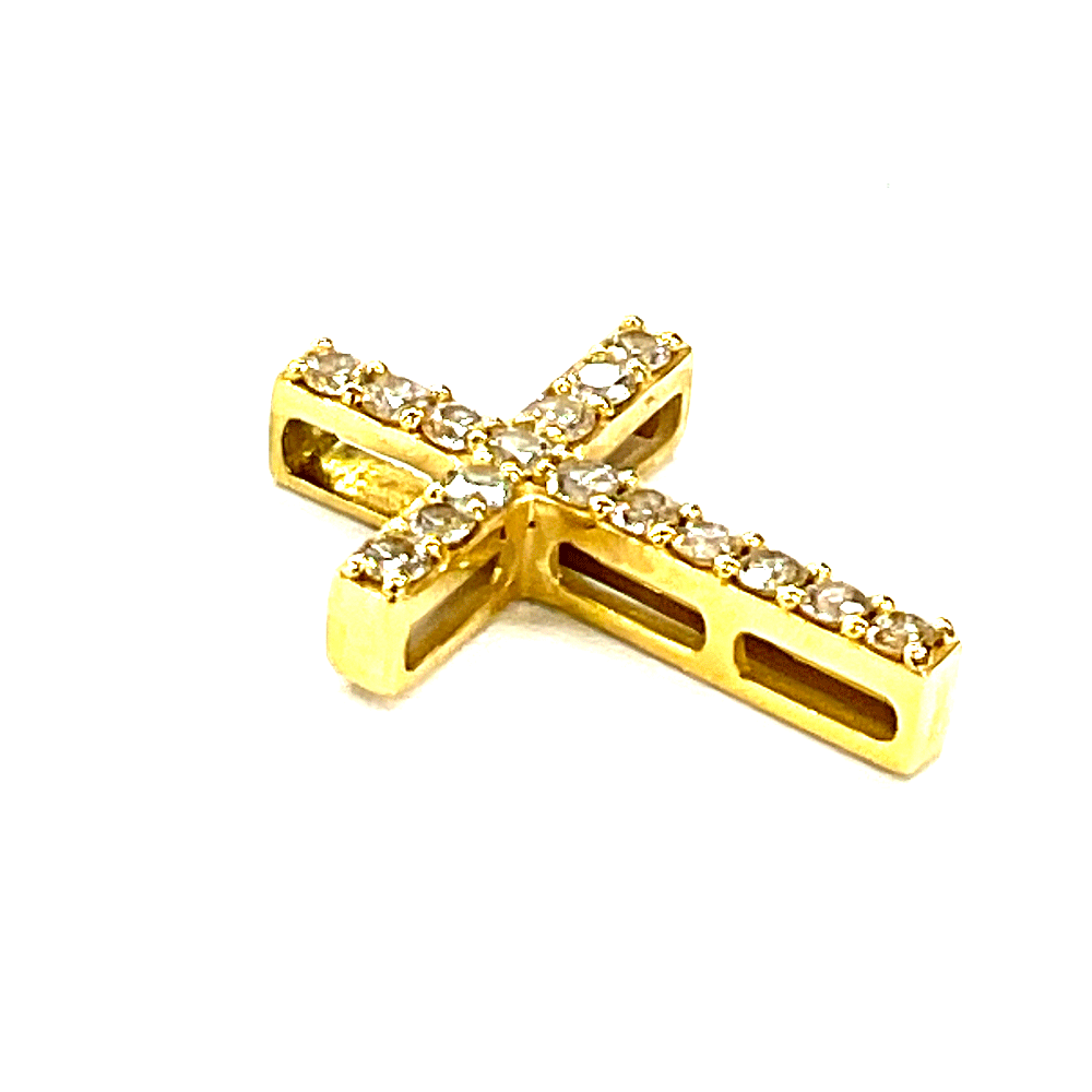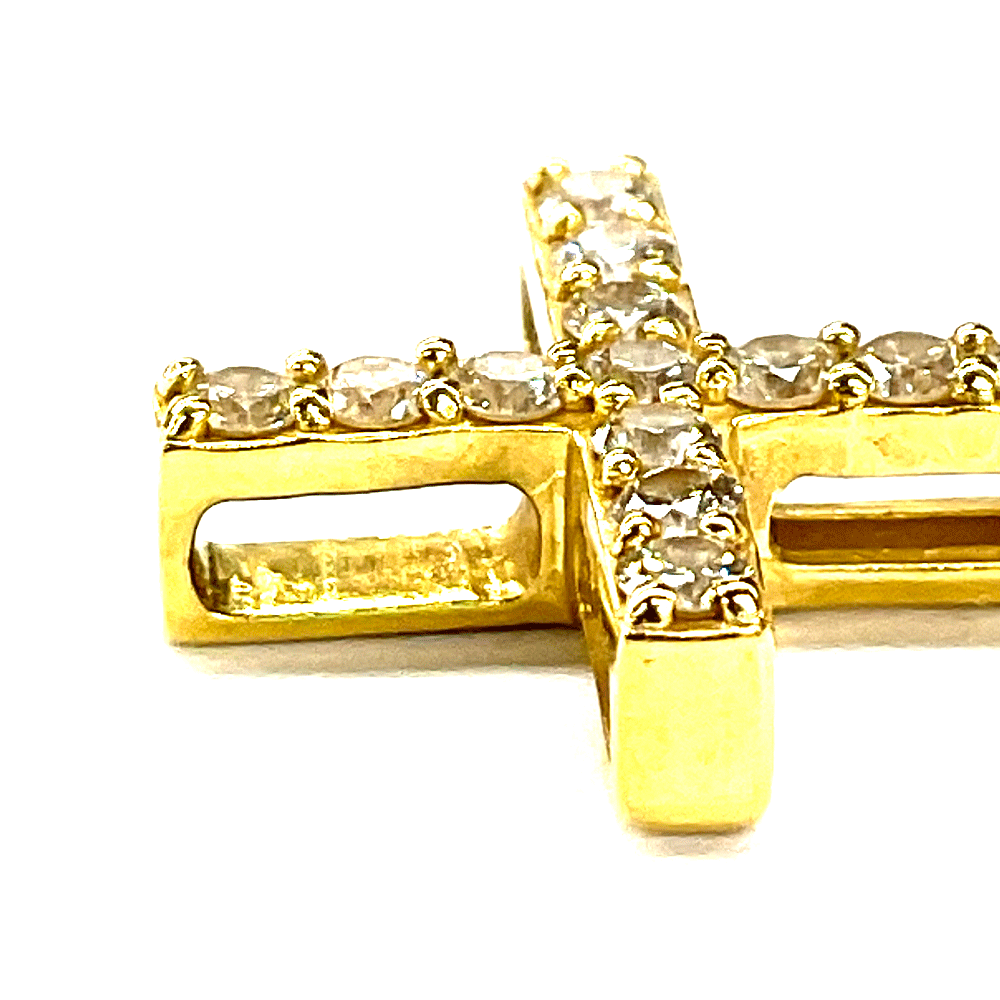 N【K18】K18 ダイヤクロストップ 約1.0g D0.25ct 4月誕生石 K18YG イエローゴールド レディーストップ ネックレストップ 十字架 中古品 質屋かんてい局那須塩原店★R2503981