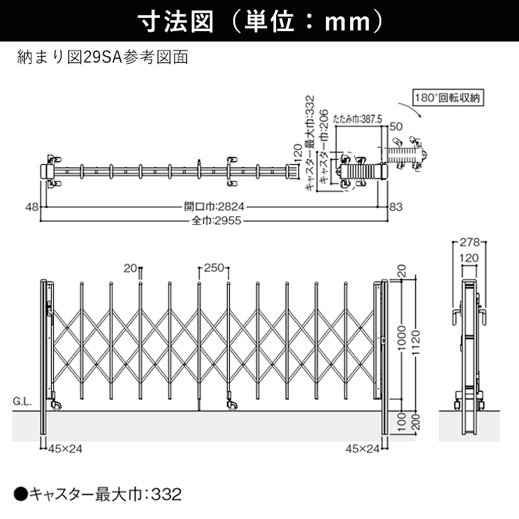 商品詳細 キー付き片開きのアルミ門扉 □リクシルのアルミ製の伸縮門扉(門扉ゲート/アコーディオン)セレビューMA型 □車庫まわりの防犯対策にオススメの鍵付き片開きカーテンゲート □標準装備:ダブルキャスター、シリンダー錠、扉先端落し錠 LIXILのカーゲートのセレビューシリーズにはペットガードタイプ、傾斜地対応タイプ、 片開き/両開き/片開き親子/両開き親子/片開き角地/両開き角地仕様等がございます。 ご希望の方はお見積りさせて頂きますので、お気軽にメールにてお問合せ下さい。 ▽ 仕様・サイズ 片開き キャスター式仕様 高さ:1,120mm 全幅(W):5,205mm たたみ幅:585.5mm 中間落し棒数:2本 広い間口幅を実現する180°回転収納式 防犯性に優れたシリンダー錠(3本入り) ▽ 材質 アルミ形材 ▽ 色 ブラック/オータムブラウン/シャイングレー/ホワイトの4色からお選び下さい。 ▽ メーカー LIXIL リクシル ▽ 注意事項 写真はイメージです。実際の寸法はサイズの項目をご確認下さい。 モニターの具合により、掲載写真と実際の商品の色が異なって見える場合がございます。予めご了承下さい。 強風による扉の破損を防ぐため、強風時にはロープで固定して下さい。 ▼PDFファイルで取付方法をご紹介しています▼ >セレビューMA型取説こちらをクリックしてダウンロード サイズをクリックすると商品ページへ進みます(サイズはおおよその表記です) ▼ LIXIL カーゲート セレビューMA型 片開き ▼ サイズ一覧 ▼ 間口2.7mまで 12SA (全幅MAX1.2m) 17SA (全幅MAX1.7m) 22SA (全幅MAX2.2m) 27SA (全幅MAX2.7m) ▼ 間口3.7mまで 29SA (全幅MAX2.9m) 32SA (全幅MAX3.2m) 34SA (全幅MAX3.4m) 37SA (全幅MAX3.7m) ▼ 間口5.4mまで 42SA (全幅MAX4.2m) 47SA (全幅MAX4.7m) 52SA (全幅MAX5.2m) 54SA (全幅MAX5.4m) ▼ オススメ伸縮門扉はこちら ▼ 伸縮門扉をもっと見る ● お店のトップページへもどる ● <関連キーワード>(本商品の説明ではありません) アコーディオン門扉 伸縮ゲート 駐車場ゲート カーゲート カーテンゲート アコーディオンフェンス 駐車場の入り口 ジャバラ門扉 鍵付き キーあり キー有り お子様やペットの道路への飛び出し抑制 屋外 外構 施主支給 店舗 施設 学校 駐車場 庭ガーデン 新築 新居 付け替え 買い替え 入れ替え 交換 修理 リフォーム LIXIL 純正品お問合せ商品番号:sev011r 伸縮門扉(ゲート/アコーディオン) リクシルのカーゲートセレビューMA型 <関連キーワード>(本商品の説明ではありません) アコーディオン門扉 伸縮ゲート 駐車場ゲート カーゲート カーテンゲート アコーディオンフェンス 駐車場の入り口 ジャバラ門扉 鍵付き キーあり キー有り お子様やペットの道路への飛び出し抑制 屋外 外構 施主支給 店舗 施設 学校 駐車場 庭ガーデン 新築 新居 付け替え 買い替え 入れ替え 交換 修理 リフォーム LIXIL 純正品