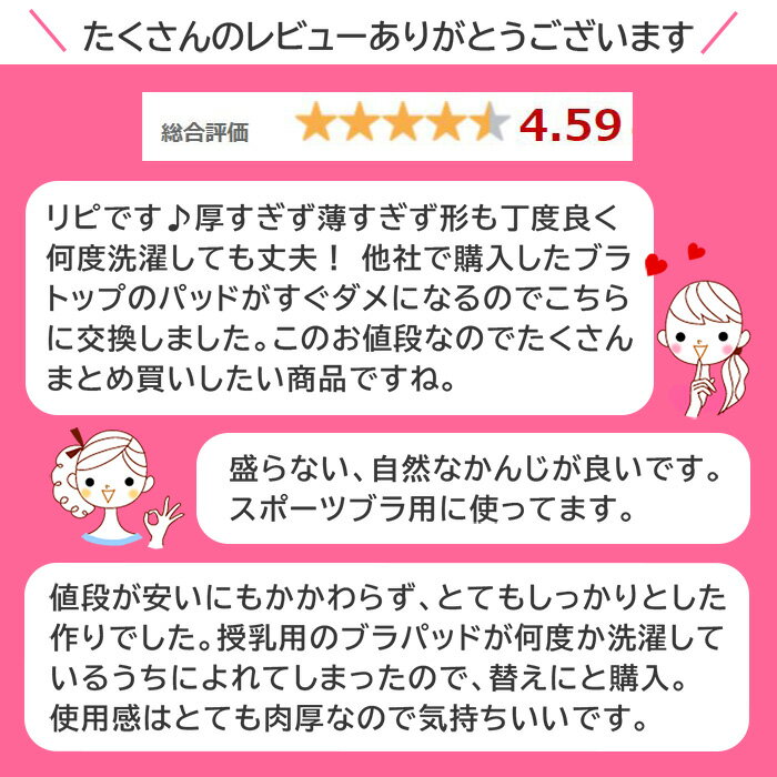 あなたにオススメの商品はこちら↓ ↓ ↓ カテゴリから探す↓ ↓ ↓\お得な3組セットともっとお得な10組セットが新登場!/ 【特価】盛らない薄手の半円型ブラパッド ・程よい厚みで、盛らずに自然な美しいバストライン ・やわらかな素材のブラパッド ・お試しにピッタリな1セット、お求めやすい3セット、とってもお得な10セットをご用意! ・リラックスタイム用のブラ、外出用のカップ付きインナーにもピッタリ ・S〜5Lまでの豊富なサイズ対応 ・使用、洗濯で劣化したブラパッドの交換用やスペアとして ・ナイトブラ、ボディファンのカップにもきれいに収まる ・湿気や皮脂汚れでカビが生えやすいブラパッド 新しいパッドで清潔で気持ちいい ※型崩れ防止のため、取り外してネットに入れて洗濯してください 単体で干して、完全に乾かしてから収納すると清潔にお使いいただけます サイズ S〜L XL〜4L 5L以上 厚み各5mm程度(中心部) ※商品の印字は生産管理番号でサイズ表記ではございません。 S〜L→S、XL〜4L→M、5L以上→L と印字されております。 素材 ポリエステル・ポリウレタン ご注意ください ◆生産時期により色、サイズ、デザインは若干異なります。ご了承の上ご購入ください。 ◆プリント柄やレース生地の商品は、生地の裁断箇所により、柄の出方が商品1点ごとに異なります。画像とは異なりますので予めご了承ください。 ◆ご注文確定後は変更・キャンセルに対応できない場合があります。内容・送付先をよくご確認の上ご注文下さい。 ◆お客様都合による交換・返品は「ご着用の有無に関わらず」衛生管理上の理由でお断りしております。 ◆ご着用に影響しない小さなシミ・少しのほつれ・イメージ違いなどの理由による交換・返品はお受けできません。 ◆モニター環境等により、表示画像と色合いが異なる場合あります。 ◆複数店舗で在庫を共有しており、ご注文のタイミングにより欠品する場合があります。 【お洗濯について】 *濃色物は移染の恐れがありますので、淡色物と分けて洗ってください。 *湿った状態で他のものとこすり合わせると色が移る恐れがあります。 *濃淡配色品は洗濯後、放置せずすぐに干してください。 *乾燥機のご使用はお避けください。