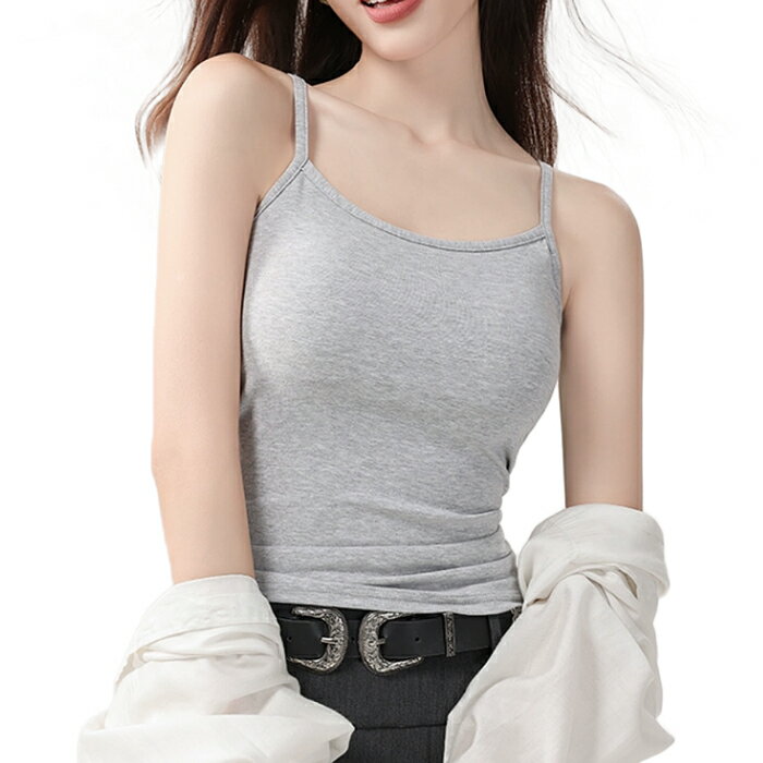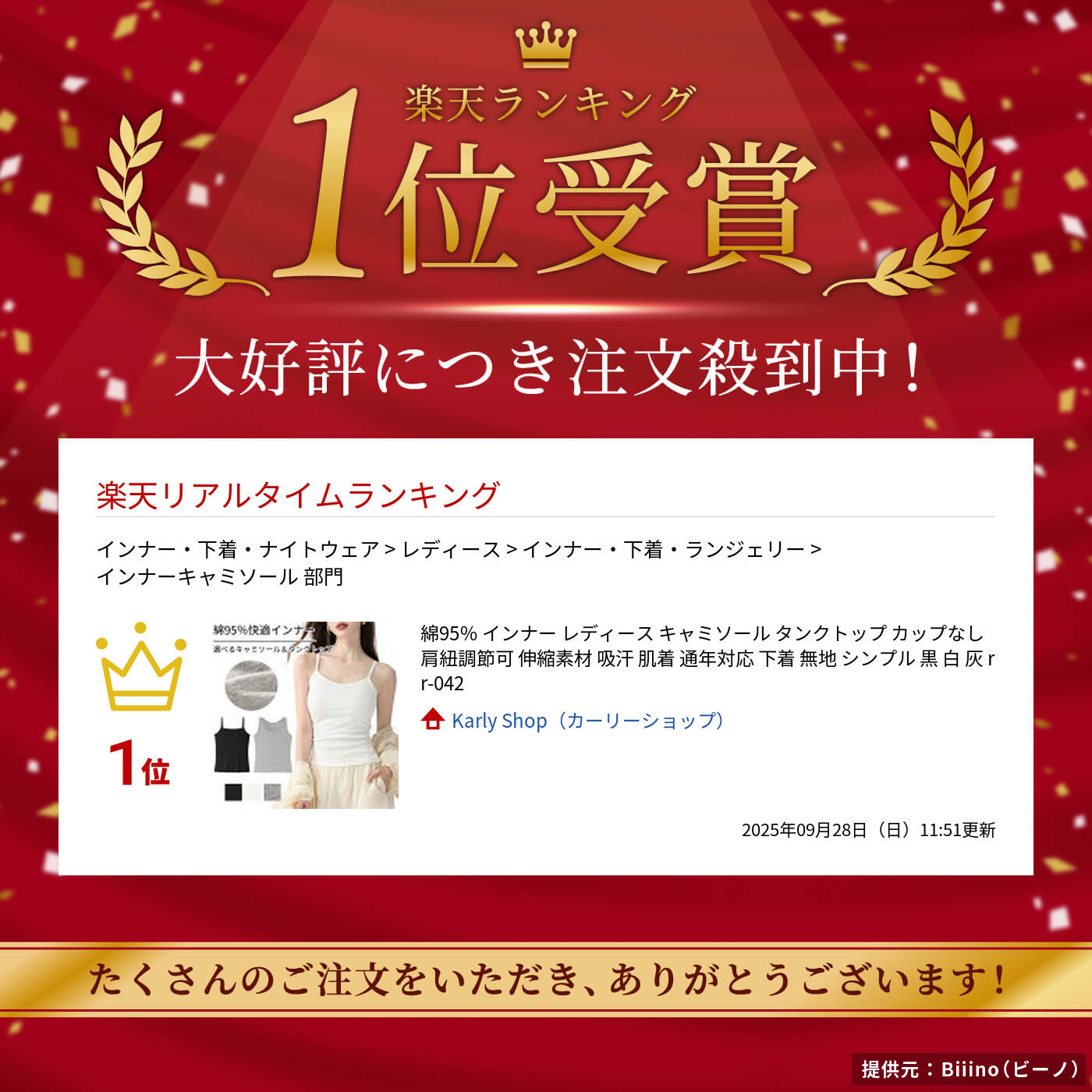 綿95% インナー レディース キャミソール タンクトップ カップなし 肩紐調節可 伸縮素材 吸汗 肌着 通年対応 下着 無地 シンプル 黒 白 灰 rr-042