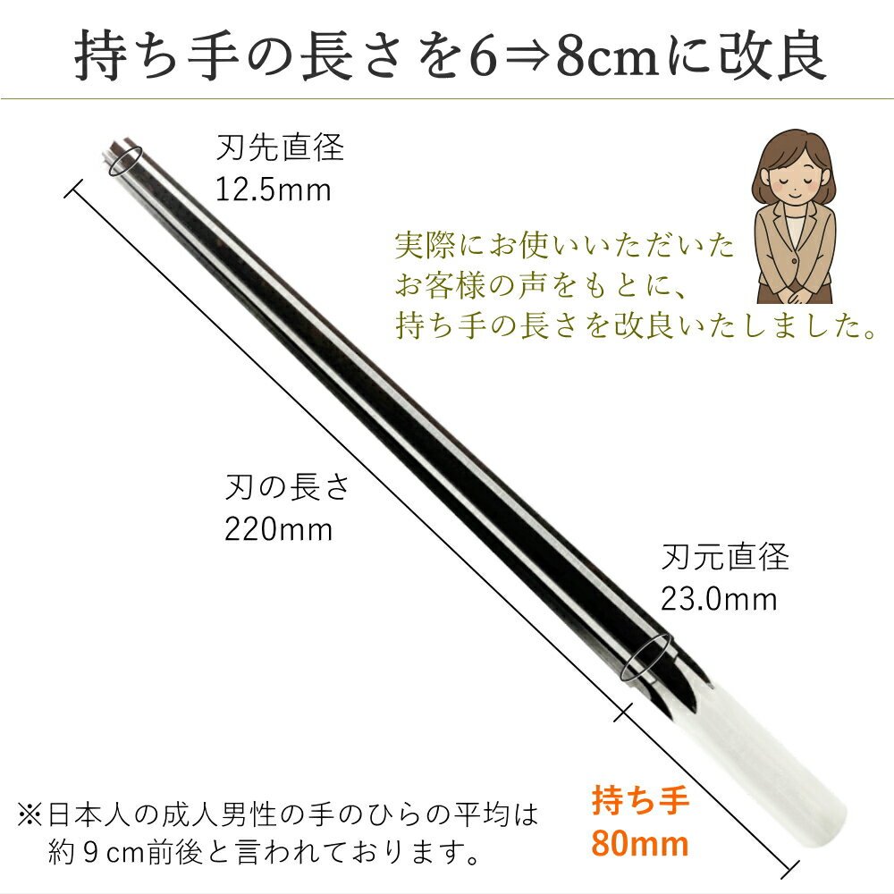 対応サイズ号数:0~30全長280mm刃長(刃径)220mm(刃先直径:12.5mm、刃元直径:23mm)持ち手60mm重量約385g材質鋼鉄 ※本製品にはサビ防止のため、油が塗られています。ワックスリーマーとは指輪のワックス製作の際にチューブワックスのリングサイズを広げるための彫金工具。ロストワックスでの指輪制作になくてはならない道具です。彫金師が監修したWAXリーマージュエリー・アクセサリー制作20年のプロがこだわりのワックスリーマーを作りました。一生モノの工具としてご愛用いただければ幸いです。0~30号まで対応したロング仕様従来のリーマーよりも刃の部分が長く設計されており、この1本で0~30号まで削れます。ピンキーリングからレディース用・メンズ用とすべてのリングサイズに対応した優れモノ。従来同様テーパーはゆるいまま刃長が22cmと長くなった分、テーパー(径が先端に向かって先細りになっている形状)はゆるいままを実現、歪みづらく精密なリング穴に仕上げることができます。