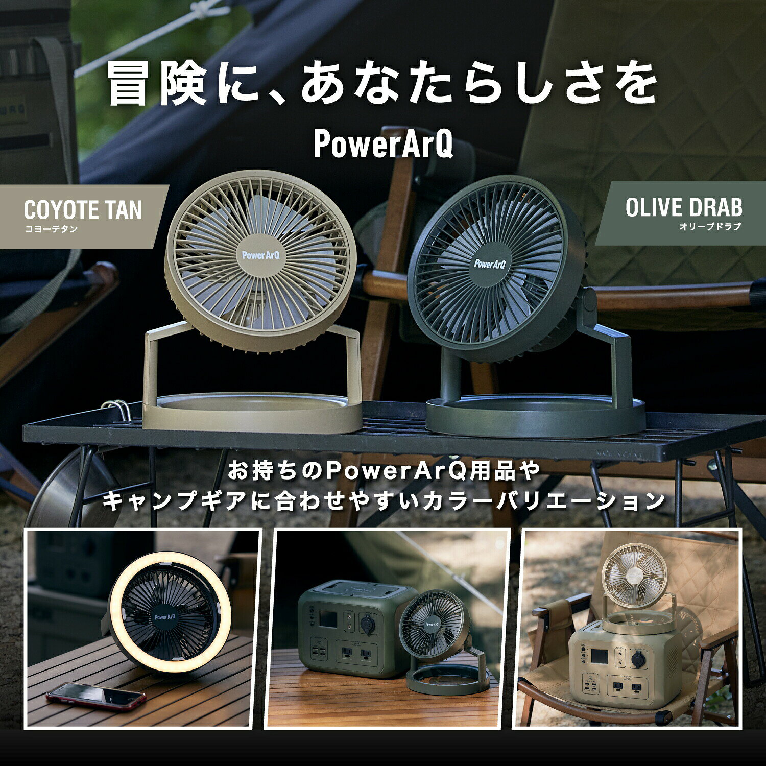 ITEM INFORMATION [スマートタップ] SmartTap サーキュレーター PowerArQ Fan Light 気持ちの良いキャンプを、あなたにテント内の空気循環や火起こしなど、アウトドアの様々なシーンで活躍するサーキュレーター。LEDライトやUSB出力も実装しているため、テント内の光源やモバイルバッテリーとしても使用可能※ サーキュレーターを上手な使えば、生活がより豊かになります。 風量 2.5m/s(弱)、3m/s(中)、3.5m/s(強) 製品サイズ 200mm × 200mm × 139mm 重量 604g メーカー型番 HP-1061 保証期間 12ヶ月保証 使用可能温度 0~40℃ UBS-A出力機能 DC 5V/2A/10W Max UBS-C入力機能 DC 5V/2A/10W Max バッテリー定格容量 8,000mAh 定格エネルギー 29.6Wh 公称電圧 3.7V バッテリー書類 18650 Li-ion LEDライト 最大30LM/最大1.5W 付属品 USB Type-C USB Type-Aコネクタケーブル(約0.8m) 取扱説明書 【卓上扇風機・サーキュレーター】 本製品は3段階の風量調節、3WAY方式の利用が可能です。卓上に置ける冷却ファン、送風機や卓上扇風機、卓上ファンや携帯扇風機、天井付けのキャンプファンとしても利用可能です。 【充電式・電源式の2方式】 本製品には dcモーターのバッテリーも内蔵しているので、コードレスの扇風機や充電式扇風機としても利用可能です。熱中症対策の季節家電としてはもちろん、炭おこしやテント内の空気循環など、様々なシーンで活用が可能です。 【おしゃれな充電式LEDマルチポータブルファン】 本製品は3段階の明るさ調節が可能な2色のLEDライト付き。LEDライトを活かして、夜中のテントサイトの光源としても使用可能です。給電はusbポートなので、コンパクトで家庭用やキャンプ、アウトドアなどでも使用可能です。また、本製品は2色のカラーバリエーションなので、キャンプのおしゃれギアとしてもオススメです メーカー希望小売価格はメーカーサイトに基づいて掲載しています PSE(電気用品安全法)に関して バッテリー本体のPSE表示に関して ※本製品は特定電気用品以外の電気用品であり、電気用品安全法の規制対象です。製品本体に丸形のPSEマークが表示されており、経済産業省に事業届け出を提出しております。 ※表示の確認はこちら 届出事業者名:加島商事株式会社 PSマークの種類:PSEご注意 楽天市場では、当店のみが正規販売店です。 当店以外の楽天市場の店舗で購入された場合、正規保証対象外となりますので、ご注意ください。 お気に入り登録すると楽天市場より通知が届きます お気に入りに登録する