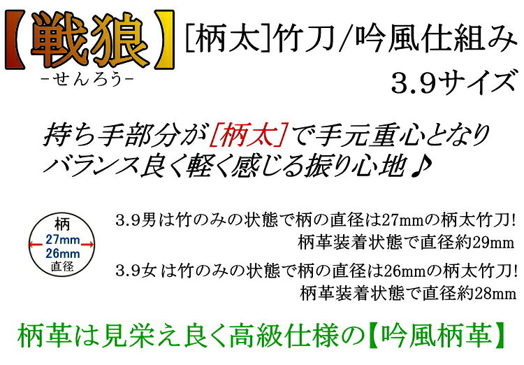 [NEW!] 竹刀《戦狼/黒》[柄太] 吟風仕組み 3.9サイズ [2本セット] 送料無料(北海道・沖縄県除く) [SSPシール付][新基準対応]【センロウ せんろう 剣道具 剣道 仕組み 完成品 極太 39 】