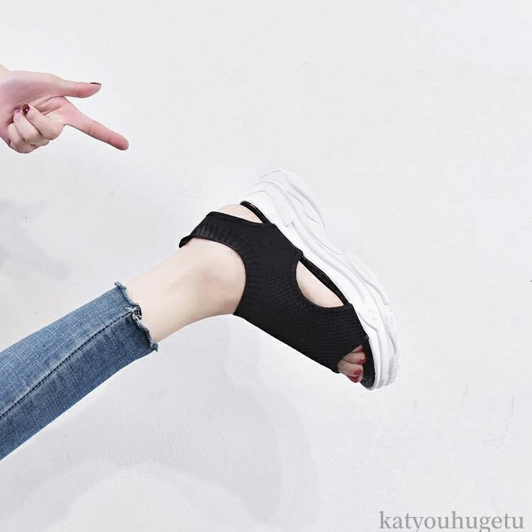【送料無料】メッシュ 通気性 靴 サンダル レディース 春 歩きやすい 夏 秋 シューズ 快適 ニット 厚底 シンプル カジュアル