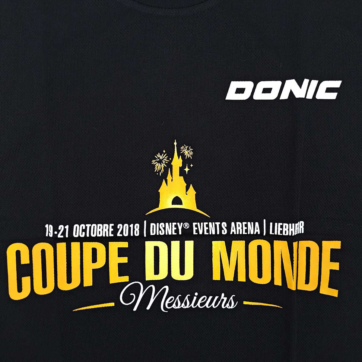 【中古・未使用品】ドニック 卓球 2018 ワールドカップ パリ フランス 記念 ドライシャツ プラシャツ Tシャツ M ブラック ユニセックス DONIC