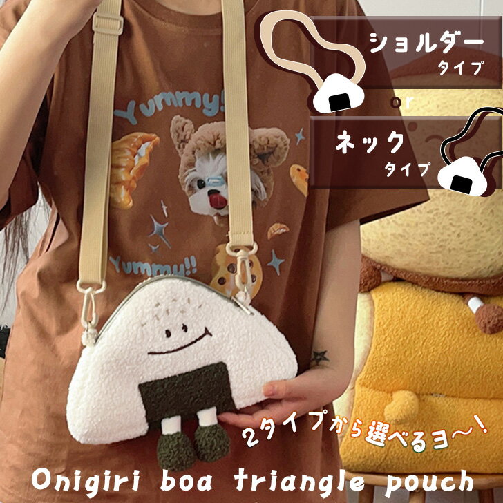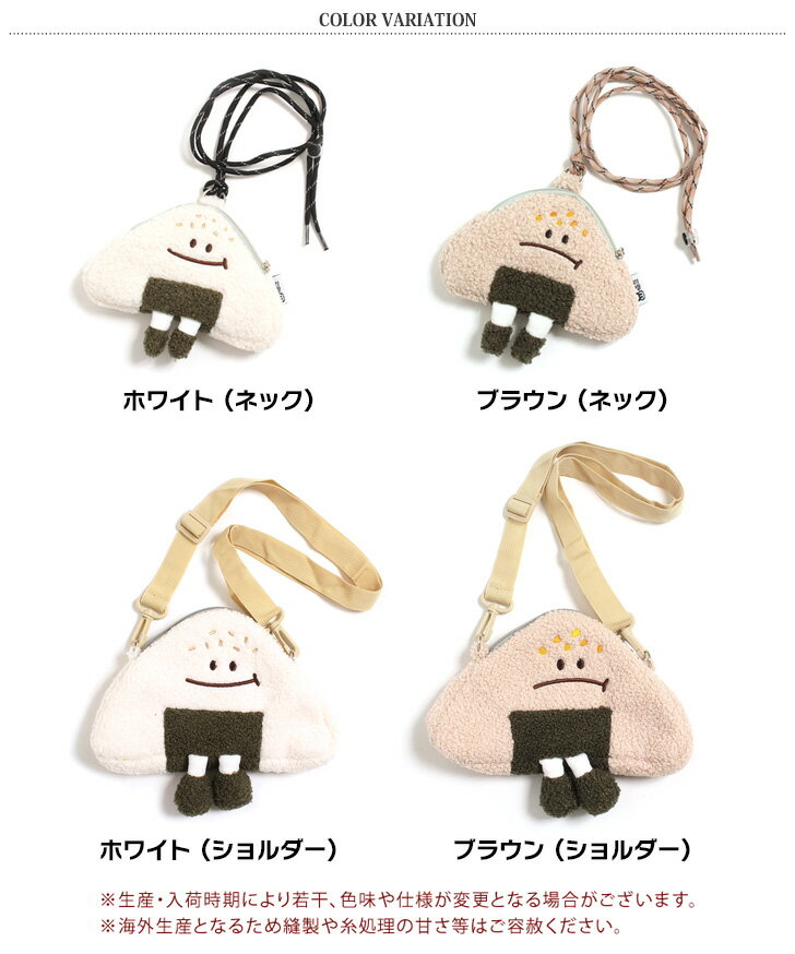 \本日店内EVENT/ 送料無料 選べる2タイプ×2カラー おにぎりくん ボア トライアングル ポーチ ネックポーチ ショルダーバッグ ポシェット メンズ レディース キッズ 子供 小物入れ 小銭入れ おにぎり 斜めがけ 首掛け 小さめ軽い メール便