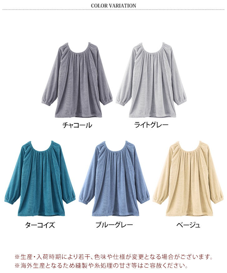 お風呂上りにバッと被るだけ!長袖バスチュニック ふんわり柔らかな肌触りに吸水速乾の マイクロファイバー生地を使用 体や髪が濡れていても着れるので、 バタバタしがちなお風呂上りでもとっても楽ちん◎ 窮屈感のないゆったりとしたサイズ感で、 風通しも良いので快適に過ごせます♪ 襟元は伸縮性抜群のゴム入りで、 オフショルダーとしても着れる2way仕様 お顔からデコルテにかけての スキンケアがしやすいのも嬉しいポイント! 入浴後のバスローブやルームウェアとしてはもちろん、 スパやサウナ、プールや海水浴時など、 幅広く活躍してくれるアイテムです◎ ※生産・入荷時期により若干、色味や仕様が変更となる場合がございます。 ※海外生産となるため縫製や糸処理の甘さ等はご容赦ください。 着るタオル ラウンドネック ボートネック ゴム オフショル オフショルダー 肩 デコルテ 鎖骨 チャコール グレー ライトグレー 灰色 ターコイズ ブルー グリーン 青 緑 ブルーグレー ベージュ 湯上りワンピース タオルポンチョ ポンチョ バスドレス サーフポンチョ サウナポンチョ お着替えポンチョ ポンチョタオル 着替えタオル プールタオル スイムタオル ビーチタオル セットアップ パジャマ リラックス 大きめ 大きいサイズ 体型カバー やわらか 柔らか 軽量 軽い リボン 着るだけ 被るだけ 時短 便利 防災 日用品 雑貨 グッズ アイテム シャワー 浴室 家 自宅 おうち 女性 女子 女の子 ママ マザーズ 母 お母さん 婦人 妊婦 マタニティ シンプル おしゃれ かわいい お洒落 可愛い オシャレ カワイイ 無地 上品 きれいめ カジュアル ガーリー 韓国 海外 北欧 ペア お揃い 海 ビーチ プール 川 水遊び 海水浴 砂浜 夏 夏用 マリンスポーツ サーフィン ダイビング アウトドア レジャー キャンプ 野外 風呂 銭湯 温泉 サウナ スパ 岩盤浴 スポーツ 運動 ジム ヨガ 旅行 トラベル デイリー 普段使い プレゼント ギフト 贈り物 新生活 引っ越し 引越 同棲 彼女 誕生日 記念日 母の日 10代 20代 30代 40代 50代 ▽その他「バスラップ」はこちら! ■生産:中国製 ■注意事項1:商品の開封時に素材の臭いを感じる場合がございます。湿気が少なく風通しの良い場所で、一週間程度陰干しして頂くと自然に軽減されます。 ■注意事項2:素材の性質上、伸縮性がございます。サイズが採寸より多少バラつきがございますので予めご了承下さい。 素材 ポリエステル カラー チャコールライトグレーターコイズブルーグレーベージュ サイズ(cm) ゆき丈 身幅 着丈 重さ(g) - 60 67 70 497 上記サイズ表はスタッフが平置きで採寸し、製品の実寸を掲載しております。製品ごとに公開サイズと多少の誤差が生じる場合がございますので、予め御了承くださいませ。