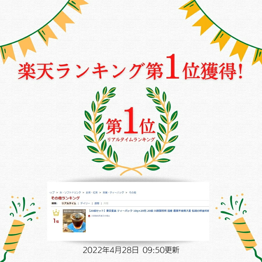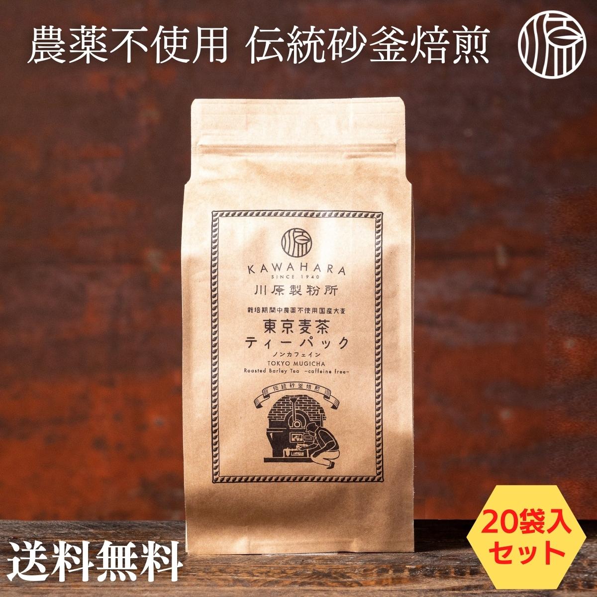 【20袋セット送料無料】東京麦茶 ティーパック 10g×20包 20袋 川原製粉所 国産 農薬不使用大麦 伝統の砂釜焙煎 ノンカフェイン カフェインゼロ ティーバッグ 水出し 水だし 煮だし お茶 茶葉 無添加 紙パック