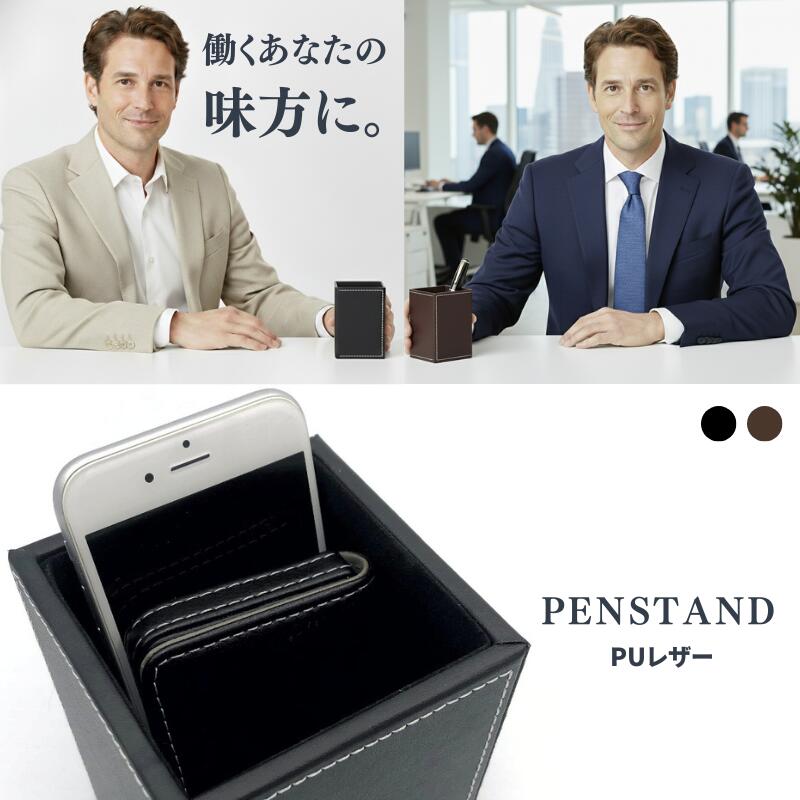 ペンスタンド オフィス デスクオーガナイザー PUレザー 合成皮革 ペン立て 長方形 無地 シンプル おしゃれ 卓上リモコン収納 小物入れ メガネスタンド リモコンラック 鉛筆たて 文具整理 オフィス デスク周り (黒・茶色) 送料無料 \クーポンあり/