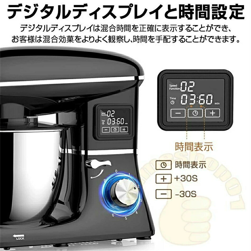 商品名 スタンドミキサー 商品特徴 ■容量:6.2L ■原料の最大量:1.5kg。 ●一台三役 ビーター、ドゥフック、ホイッパーの3種類のアタッチメントが付属し、混合、撹拌、泡立てなどの機能を簡単に実現できます。 ●P+6段階速度調節可能 レベルPはマニュアルモードで,レベルPに入ると作業を開始し,離すと作業を停止する。原材料と撹拌部品によって1~6段の速度を選択し、より良い撹拌効菓を得る。 ●デジタルディスプレイと時間設定 デジタルディスプレイは混合時間を正確に表示することができ、お客様は混合効菓をよりよく観察し、時間を手配することができます。 ●おいしい料理を作る 余暇にはミキサーを使ってケーキやパン、クッキー、麺などおいしいものを手作りすることができます。 ご注意 ◆※【下記の場合も返品・交換をお受けできません】 ・ ご使用済・洗濯済場合 ・ お客様の元できずまたは破損・汚損が生じている場合 ・ 商品ににおいが付着している場合 ・ 過度な返品・交換を繰り返している場合 ・ 転売目的であると弊社が判断した場合 (弊社が転売目的と判断した場合を含みます) ※取り扱い上のご注意をよくお読みの上ご使用下さい。 ●機械による生産過程において、生地を織る際の糸の継ぎ目、ほつれなどが生じている場合がございますが、品質上の問題はございません。 ●使用するパソコンのモニター設定や部屋の照明により多少、色の変化が感じられる場合がございます。 ●大量生産の為、生産時期により、若干カラーの違いやサイズに誤差がございます。予めご了承下さいませ。 ●商品に使用している生地や素材上、臭いが気になる場合がございます。 ●色味が異なる・臭いなどの理由の交換・返金はお受けできません。ご了承くださいませ。